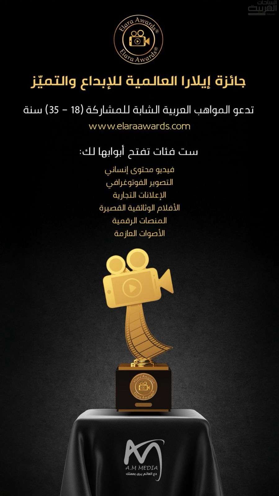 تفتح جوائز إيلارا العالمية للإبداع والتميّز باب المشاركة للشباب العرب من عمر 18 إلى 35 عامًا ضمن ست فئات إبداعية تستهدف دعم المواهب في مجالات الإعلام وصناعة المحتوى الرقمي، وتعزيز حضورهم في المشهد الإبداعي العربي.