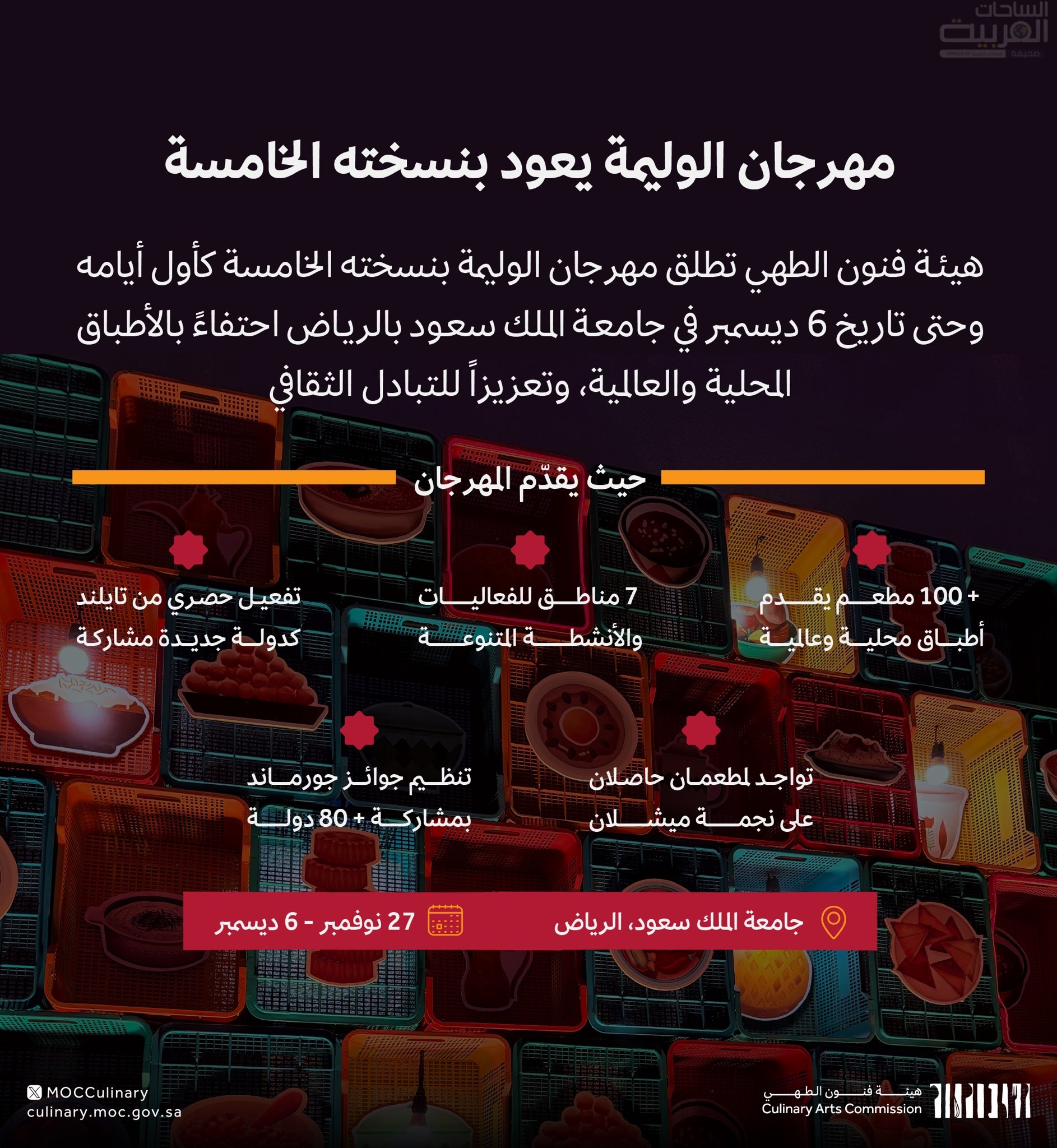 تنظم ﻫﻴﺌﺔ ﻓﻨﻮن اﻟﻄﻬﻲ ﺧﻼل اﻟﻔﺘﺮة ﻣﻦ 27 ﻧﻮﻓﻤﺒﺮ إﻟﻰ 6 دﻳﺴﻤﺒﺮ 2025م،