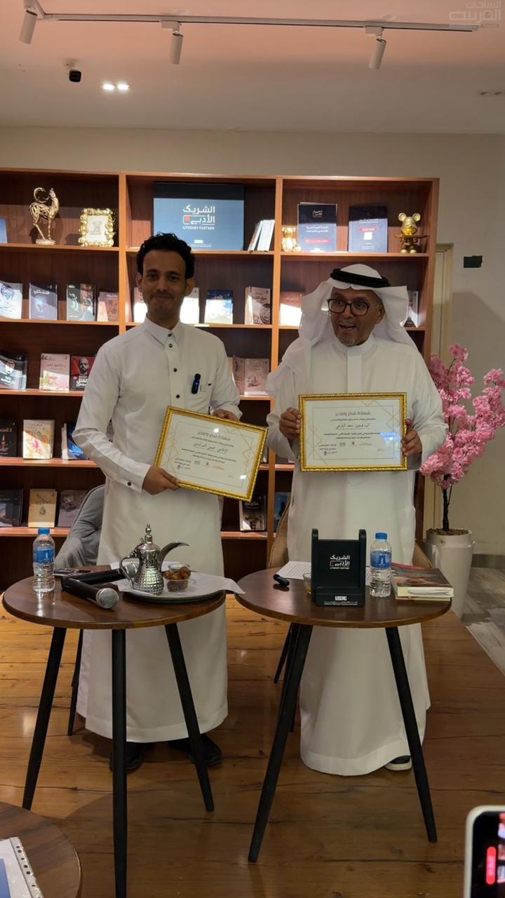 وفي ختامِ الأمسية، تم تكريم متحدث الأمسية والمحاور تقديرًا لعطائِهما الأدبيِّ وإبداعِهما ومشاركتِهما الفاعلةِ في إحياءِ اللقاء وسطَ أجواءٍ تعبقُ بالإعجابِ والتقديرِ والامتنان.