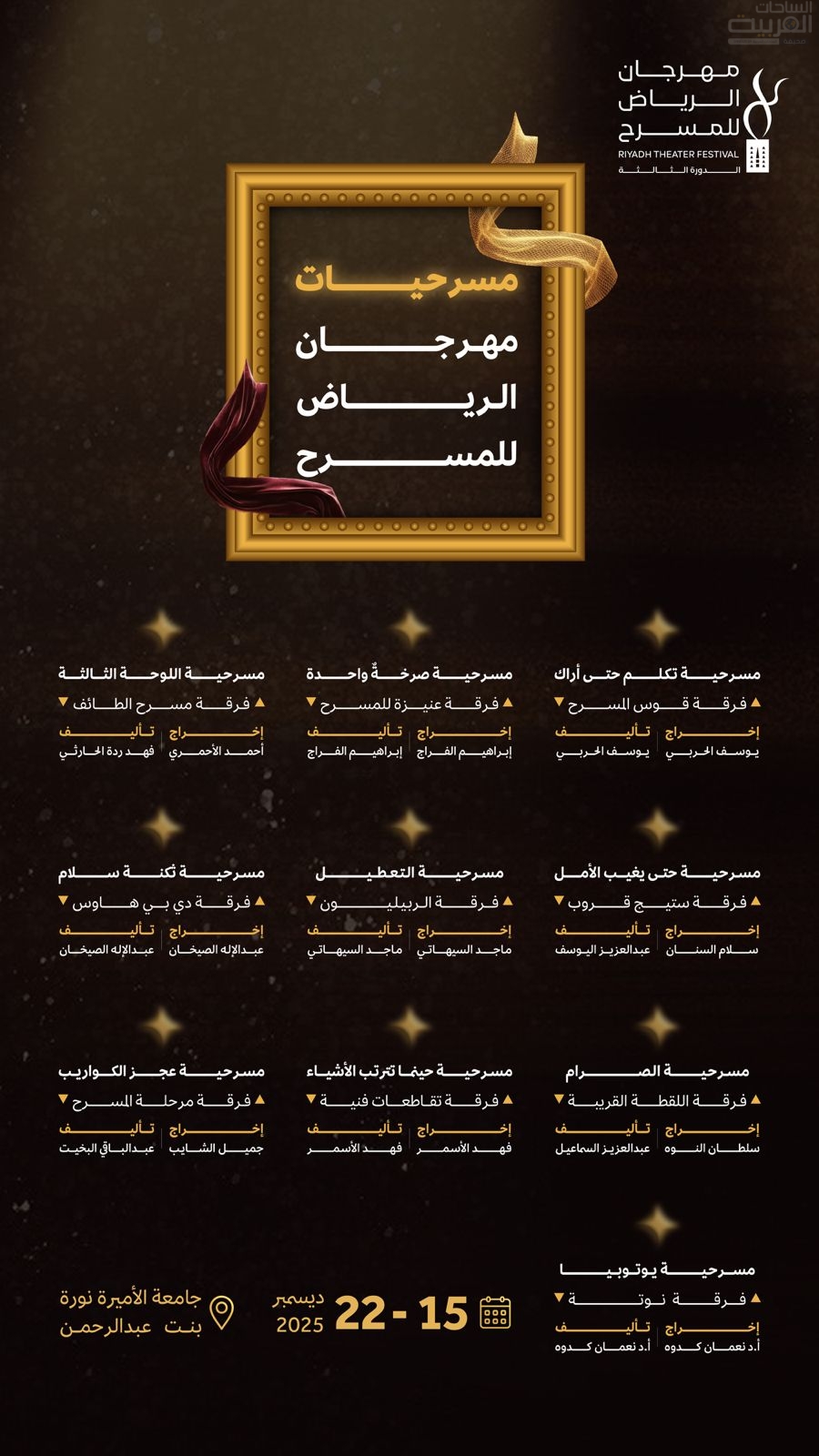 هيئة المسرح والفنون الأدائية تكشف عن أسماء المسرحيات المتأهلة للمشاركة بمهرجان الرياض للمسرح في دورته الثالثة