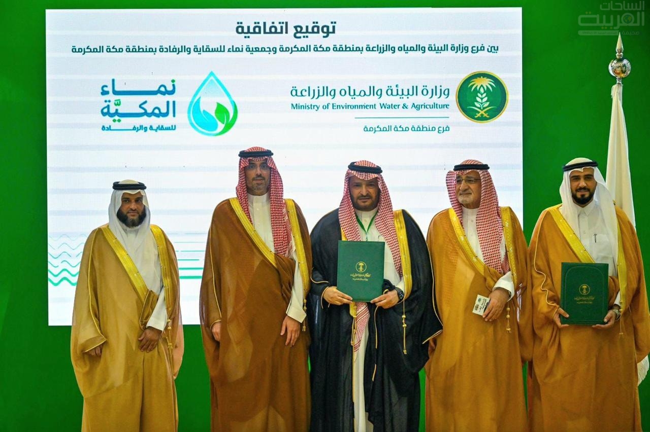 برعاية صاحب السمو الملكي الأمير سعود بن مشعل بن عبدالعزيز نائب أمير منطقة مكة المكرمة، شهد صاحب السمو الأمير سعود بن عبدالله بن جلوي محافظ جدة توقيع مذكرة تعاون بين جمعية نماء المكية للسقاية والرفادة بمنطقة مكة المكرمة وفرع وزارة البيئة والمياه والزراعة بمنطقة مكة المكرمة ، وذلك على هامش معرض جدة الدولي للمنتجات الغذائية ومهرجان “خيرات مكة”، الذي نظمه فرع الوزارة بمركز جدة للمعارض والفعاليات.