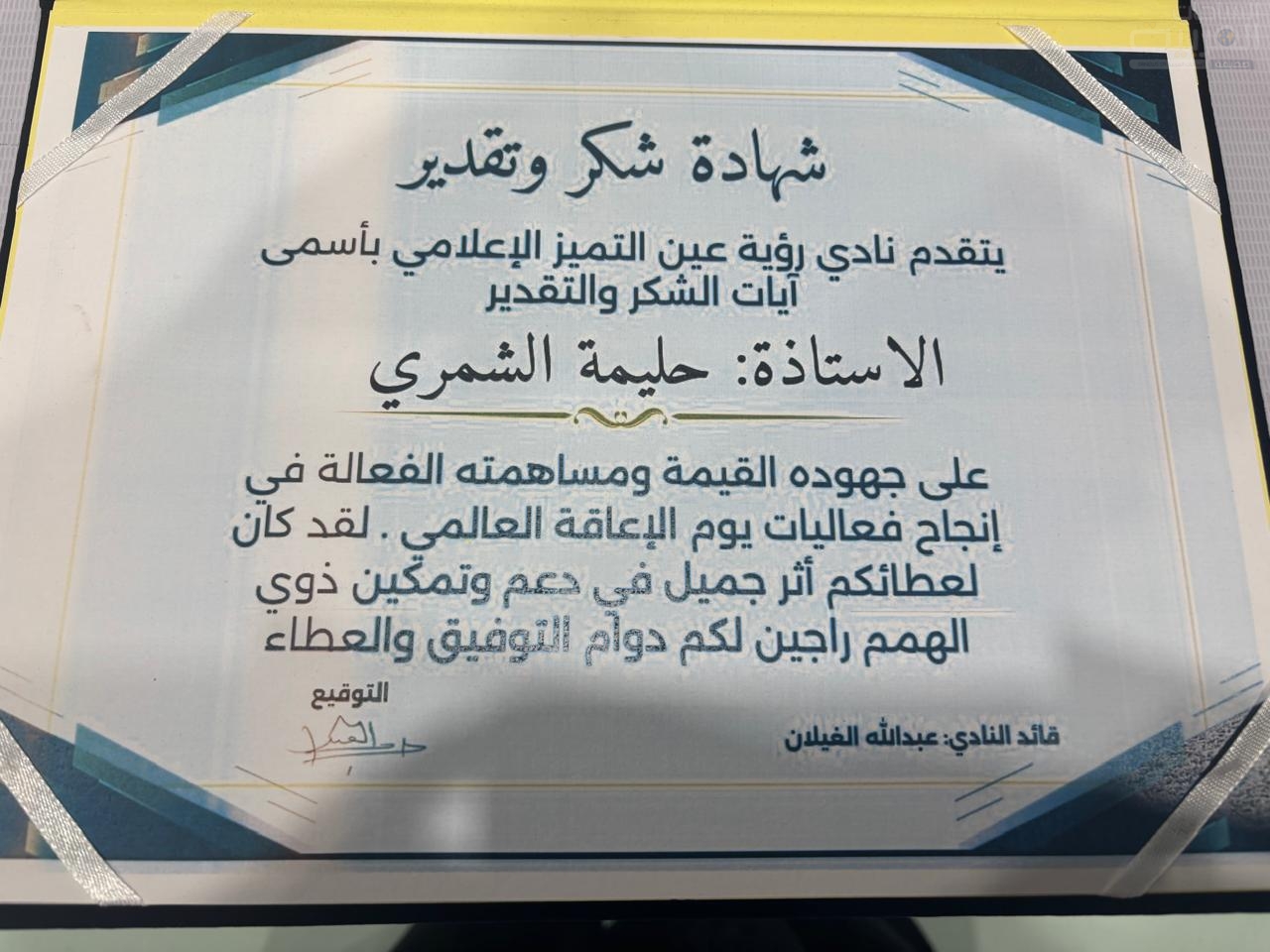 نفذ نادي رؤية عين التميز مع تمكين الهمم مبادرة نوعية تحت شعار ابداع يصنع التميز والتمكين يهدف دعم اصحاب الهمم وتمكينهم من إبراز مواهبهم وقدراتهم في بيئه محفزه وشامله وتضمنت المبادره عدد كبير من الورش والانشطه التفاعليه التي ركزت على تنمية الإبداع والمهمات الشخصيه وسط تفاعل مميز من اصحاب الهمم وأسرهم واكد نادي رؤية عين التميز مع تمكين الهمم استمرار تقديم مبادرات نوعيه تعزز الدمج المجتمعي وتدعم مسارات التميز والإبداع لدي هذه الفئه الغاليه