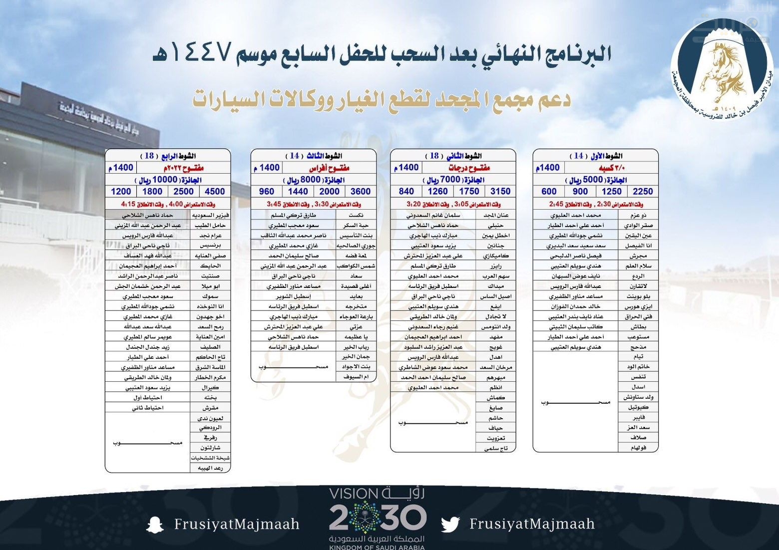 واختتمت اللجنة المشرفة واللجان الفنية المنظمة الميدان دعوتها بالتأكيد على أن الحضور يشكّل دعمًا مباشرًا لاستمرار هذه الرياضة التي تعبّر عن عمق الموروث العربي الأصيل، وتعكس ما يحظى به قطاع الفروسية من اهتمام ورعاية في المملكة.
