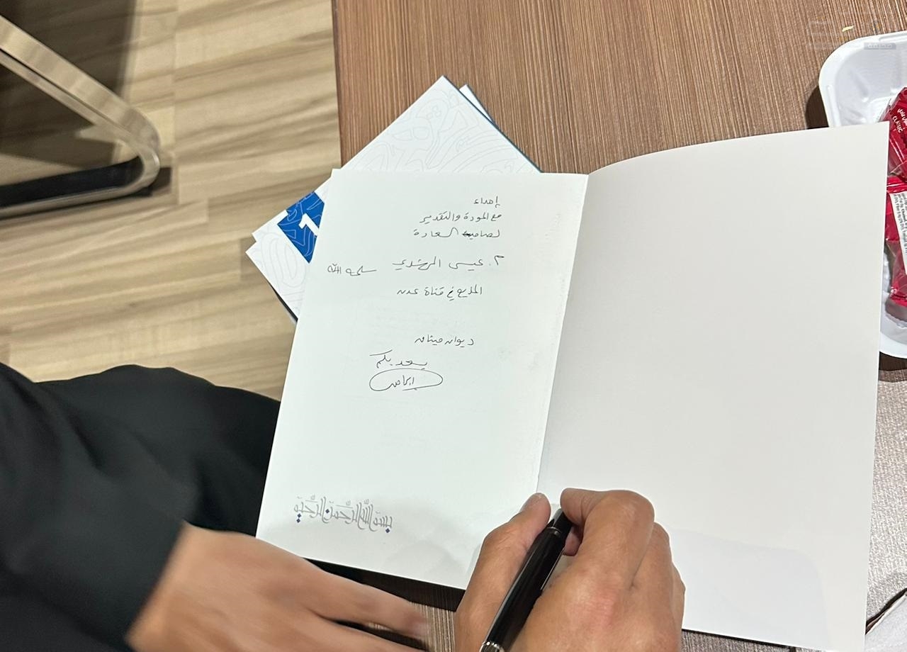 وفي ختامِ الأمسية، تم توقيع وتوزيع ديوان ميثاق للشاعر السماعيل وسطَ أجواءٍ تعبقُ بالإعجابِ والتقديرِ والامتنان.