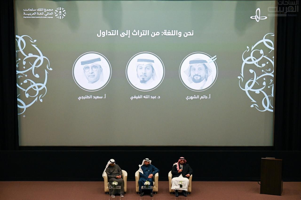 حيث استعرضت الجلسة التي أداراها الأستاذ حاتم الشهري، مسارات تطوير اللغة العربية وتعزيز حضورها المعاصر، وشارك فيها رئيس قطاع الحوسبة اللغوية في مجمع الملك سلمان العالمي للغة العربية الدكتور عبدالله الفيفي، والرئيس التنفيذي لمركز أبوظبي للغة العربية الأستاذ سعيد الطنيجي،وتطرقت الجلسة إلى آفاق تحويل اللغة العربية من مخزون تراثي إلى عنصر فاعل في الفعاليات الثقافية ومكسب حضاري واقتصادي.