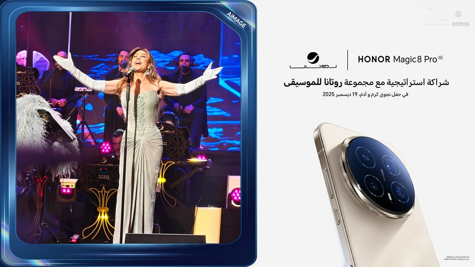 أعلنت “مجموعة روتانا للموسيقى” خلال نجوى كرم وآدم والذي اقيم في مسرح “محمد عبده أرينا – بنك الإمارات دبي الوطني” ضمن فعاليات موسم الرياض السادس، عن استمرار شراكتها الاستراتيجية مع HONOR العلامة الرائدة عالمياً في الأجهزة المدعومة بالذكاء الاصطناعي، وتجمع هذه الشراكة بين اسمين رائدين في الترفية وصناعة الموسيقى والتكنولوجيا، حيث لعبت HONOR دور الراعي الاستراتيجي، وتم اعتماد هاتف HONOR Magic8 Pro كالجهاز الحصري المستخدم في تصوير وتوثيق الحفل.