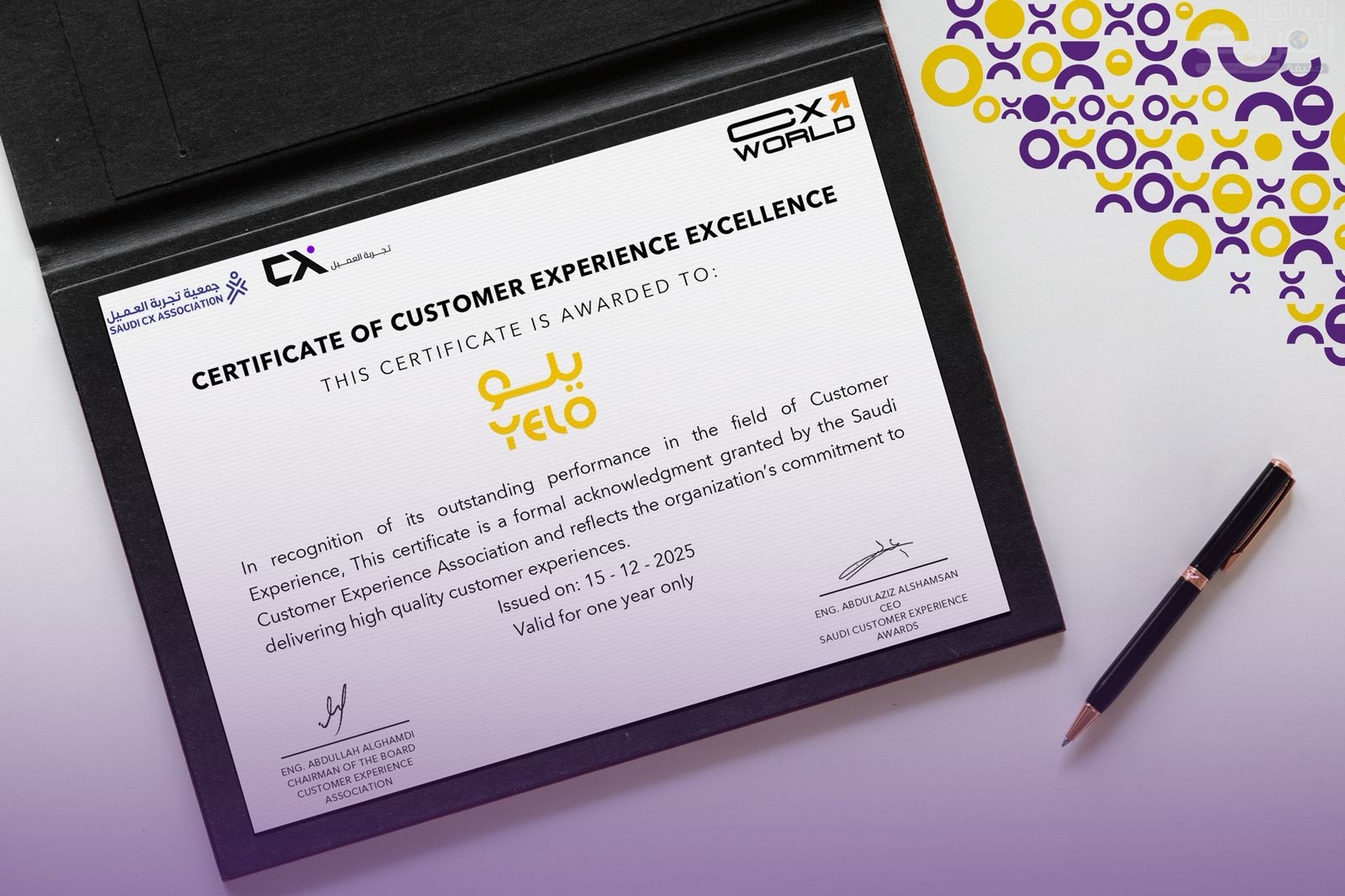 وبهذه المناسبة، أكد الرئيس التنفيذي لشركة الوفاق لحلول النقل “يلو” الأستاذ حمد الحميّد أن حصول الشركة على شهادة التميّز في تجربة العميل يُعدّ مؤشرًا إيجابيًا على أن العمل يسير وفق الاتجاه الاستراتيجي الصحيح الذي تم التخطيط له لتطوير الأعمال وتمكين الشركة من تقديم أفضل مستوى من الخدمة. وأضاف، أن نيل شهادة من جهة متخصصة في تجربة العميل يشكّل حافزًا قويًا لمواصلة التطوير والارتقاء المستمر، بما يواكب تطلعات العملاء، ويعزّز الابتكار، ويثري تجربة العميل في كل مرة يختار فيها “يلو”.