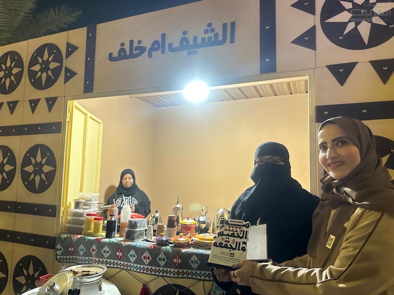 حرفيّة من الجوف أقدّم شغلي بحب، وأشارك في سوق الخميس والجمعة لتعريف الناس بمنتجي المحلي.”أكلات شعبيه / ام زيادالرويلي.