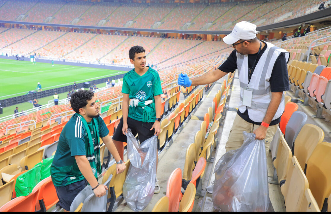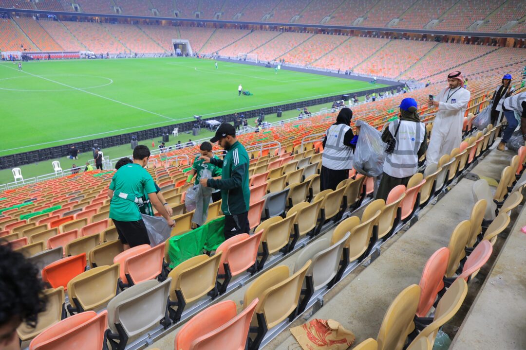 إلى جانب مشاركة المتطوعين في رفع مستوى وعي الجماهير بأهمية المحافظة على البيئة، وتوجيههم لآليات الفرز الصحيحة، إضافة إلى المساهمة في تنظيف المدرجات عقب نهاية المباراة، في مشهد يعكس روح المسؤولية المجتمعية والعمل التطوعي.
