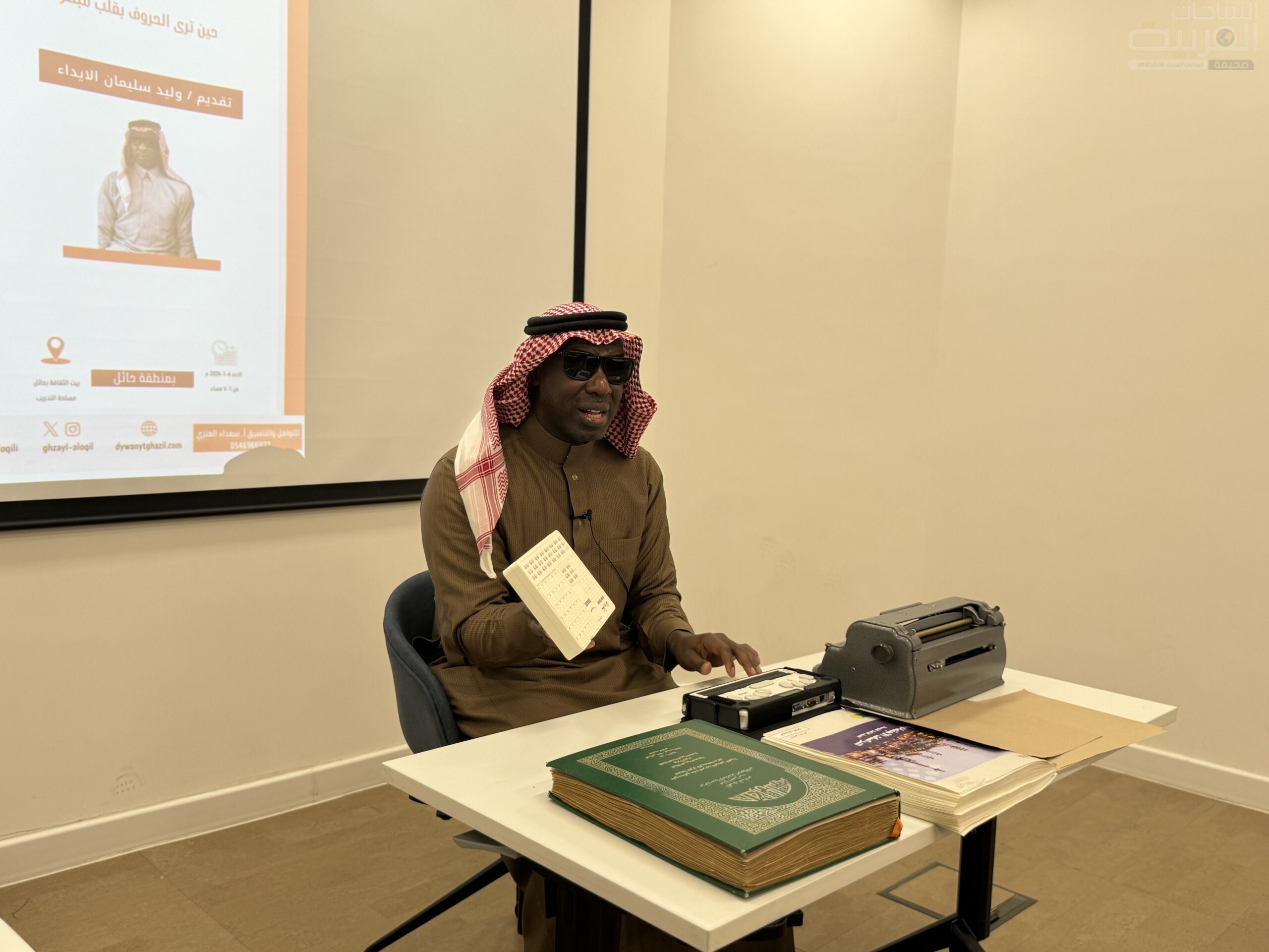 وشهدت الأمسية مشاركة الأستاذ وليد سليمان الإيداء، ضيف هذه الأمسية معلم العوق البصري بمتوسطة ثابت بن قيس، الذي يجيد لغة برايل كتابةً وقراءةً وقد استعرض تجربته الشخصية مع الكلمة وطزيقة برايل، موضحًا كيف تتحول الحروف من رموز تُقرأ بالعين إلى نور يُدرك بالقلب، مؤكدًا أن الأدب مساحة إنسانية مفتوحة للجميع، وأن ذوي الإعاقة البصرية يمتلكون قدرات إبداعية عالية تتجاوز التحديات.