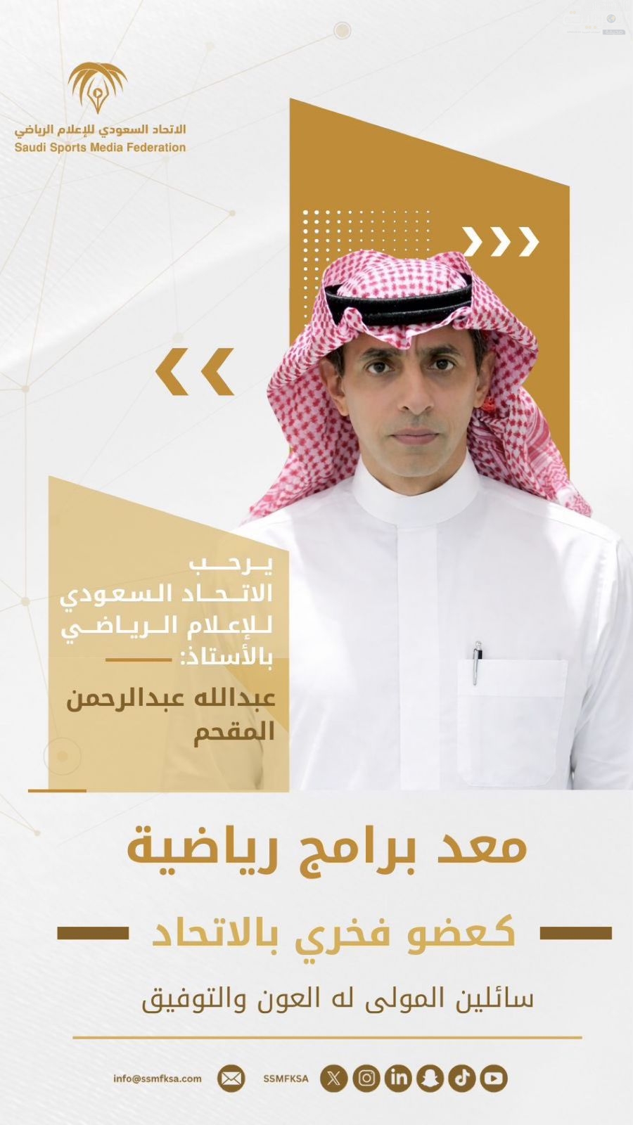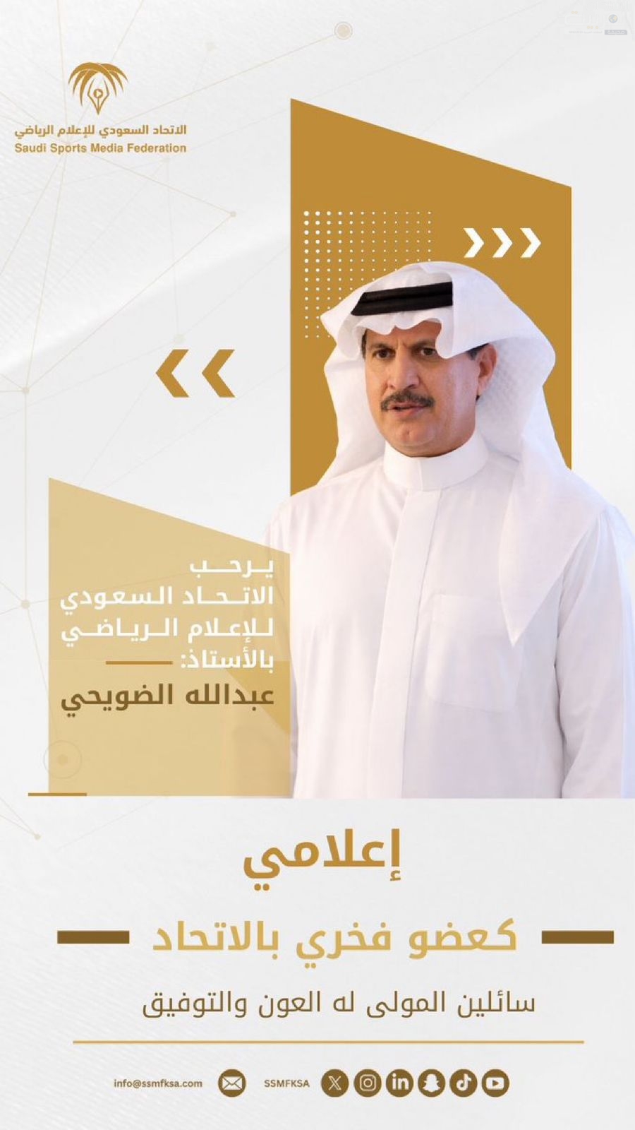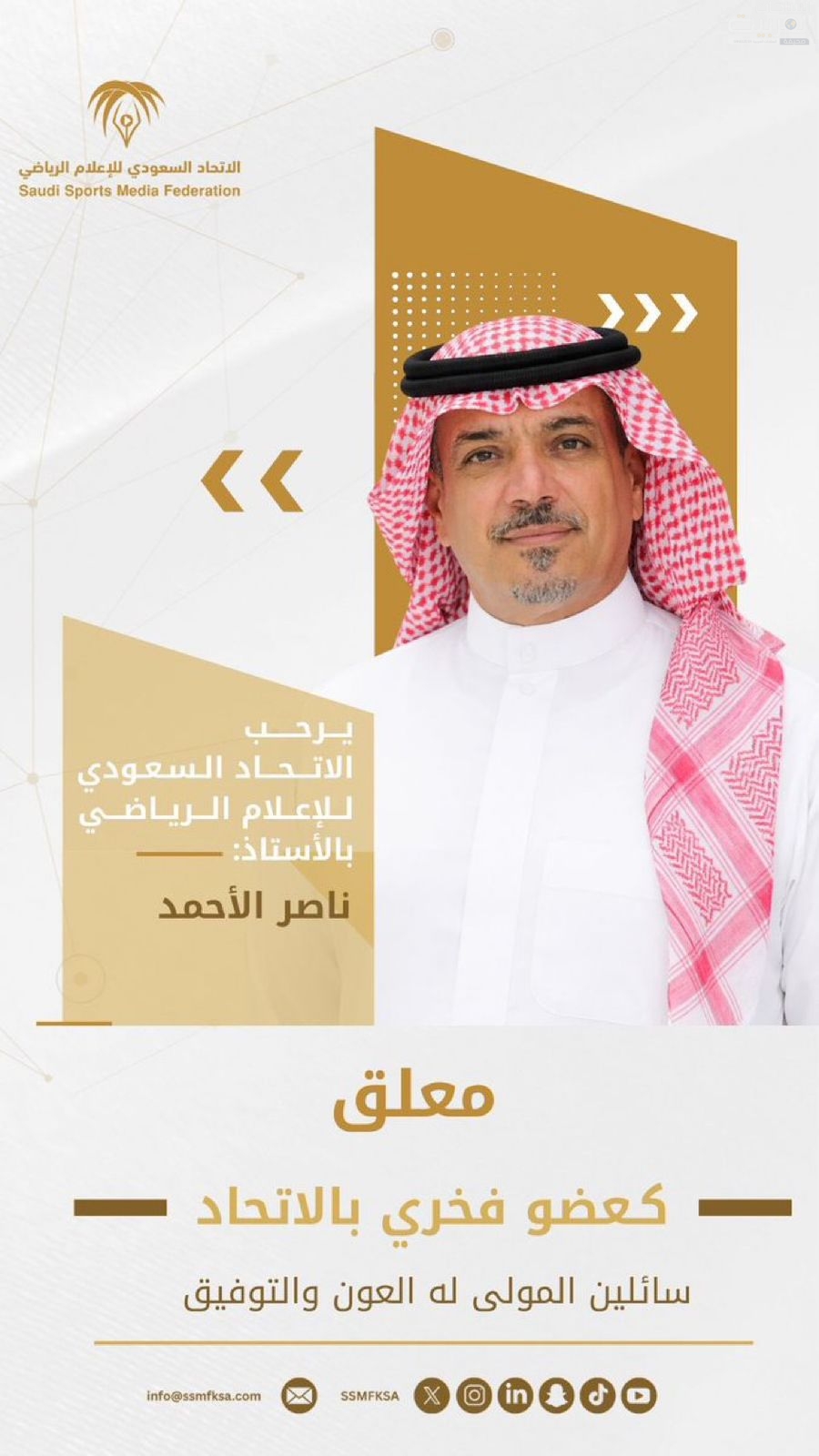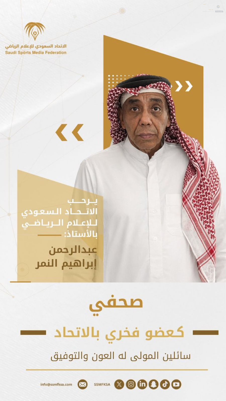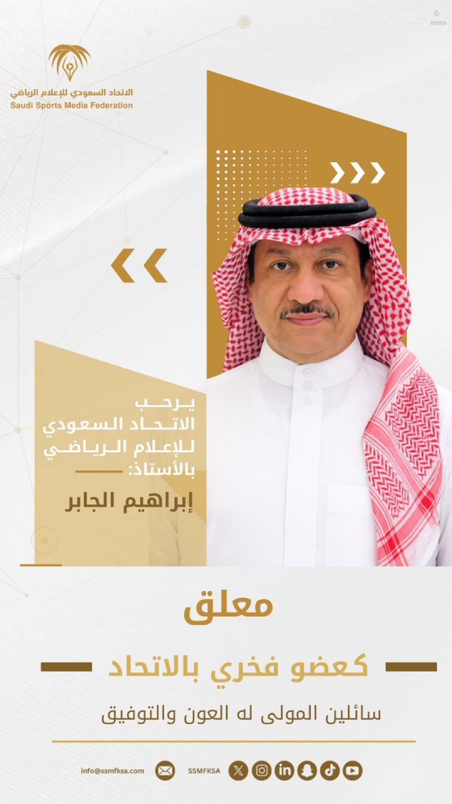 ويأتي هذا القرار بناءً على اعتماد مجلس إدارة الاتحاد السعودي للإعلام الرياضي، وضمن توجهاته الرامية إلى تكريم الشخصيات الداعمة والمؤثرة، وتقدير دورهم في خدمة أهداف الاتحاد وتعزيز رسالته.