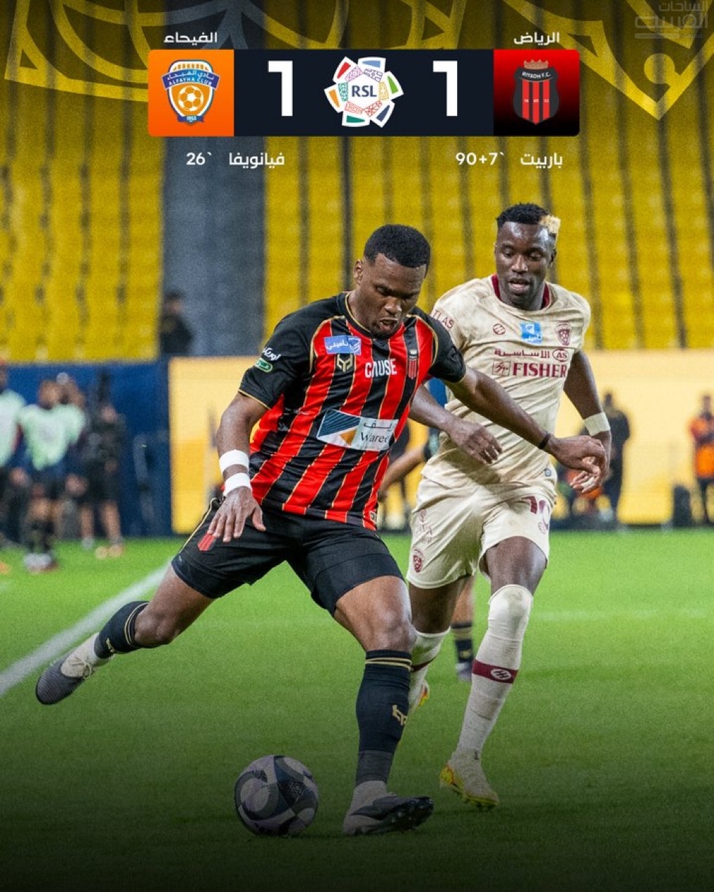 ظن الجميع أن الفيحاء في طريقه لحصد النقاط الثلاث، قبل أن يظهر يوان باربت ويسجل هدف التعادل القاتل للرياض في الدقيقة 90+7.