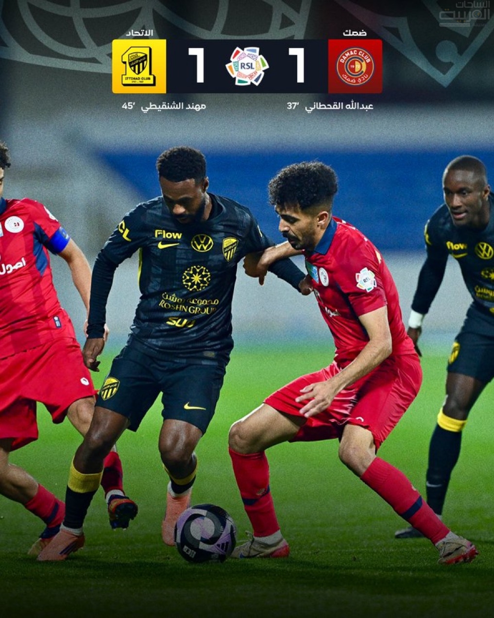 تعثر الاتحاد حامل اللقب، بعد 6 انتصارات متتالية بجميع المسابقات، بتعادله 1-1 أمام مضيفه ضمك في دوري روشن ، خلال لقاء شهد إصابة كريم بنزيما الثلاثاء.