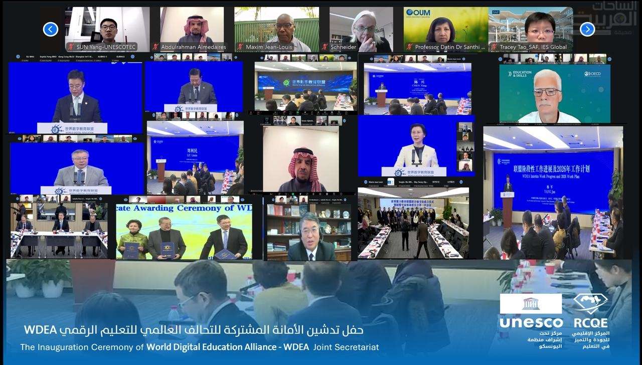 شارك مركز اليونسكو الإقليمي للجودة والتميز في التعليم (UNESCO RCQE) في حفل تدشين الأمانة المشتركة للتحالف العالمي للتعليم الرقمي (World Digital Education Alliance – WDEA)، الذي عُقد اليوم في العاصمة الصينية بكين، بحضور أعضاء التحالف ونخبة من الخبراء الدوليين وصناع القرار في مجال التعليم الرقمي.