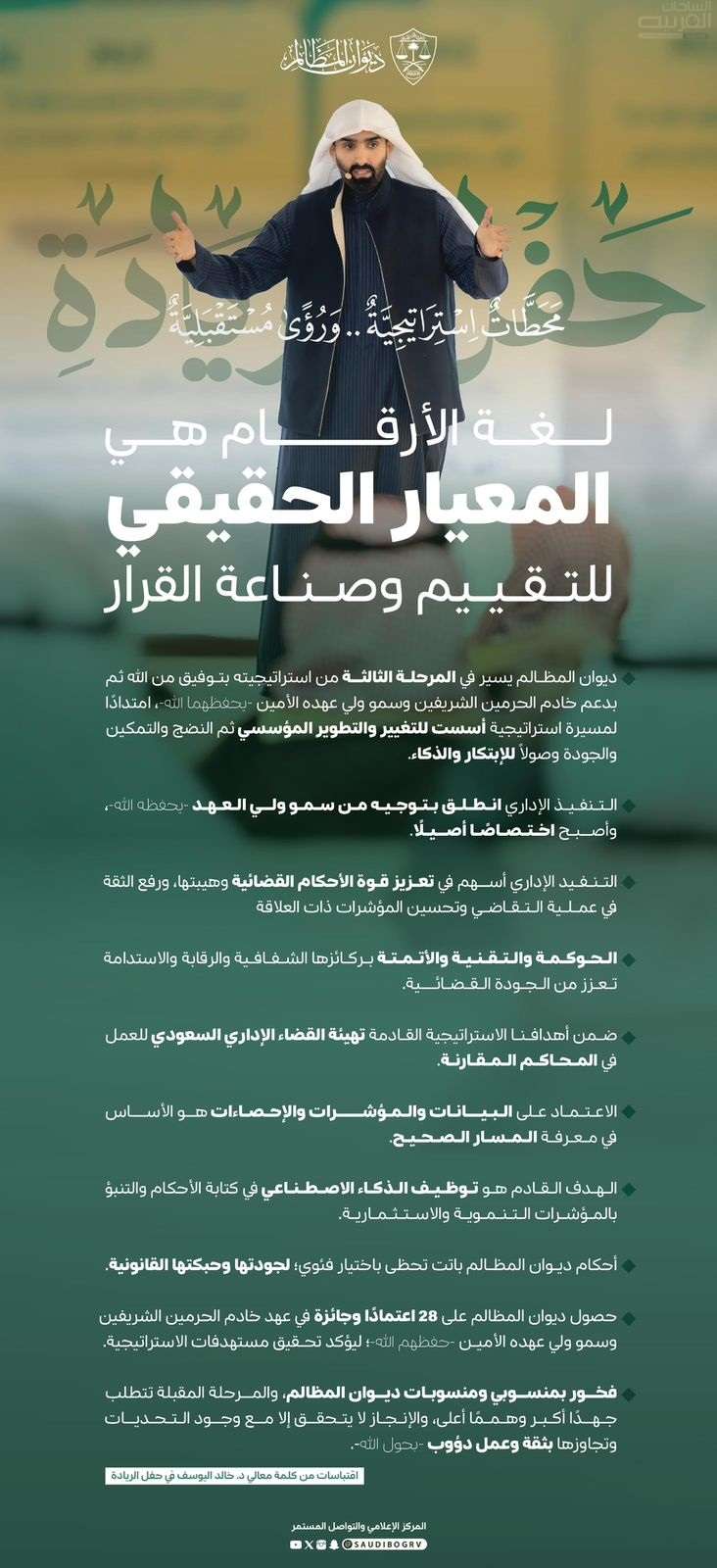 معالي د. خالد اليوسف في حفل الريادة بديوان المظالم: نستلهم التغيير والابتكار من سمو ولي العهد لرسم المستقبل