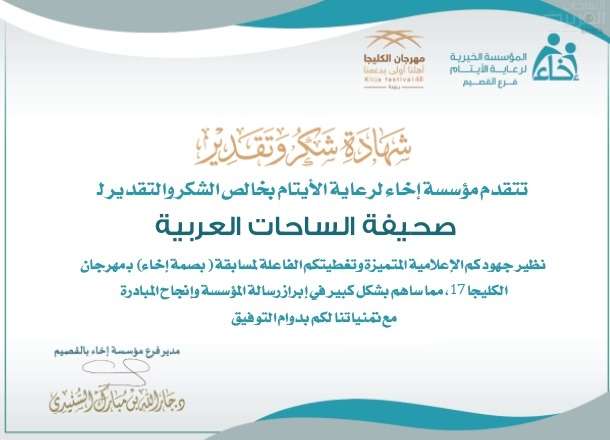 اختتمت المؤسسة الخيرية لرعاية الأيتام (إخاء) بمنطقة القصيم، مسابقتها “بصمة إخاء” ضمن فعاليات مهرجان الكليجا الـ 17، وسط إقبال جماهيري كبير.