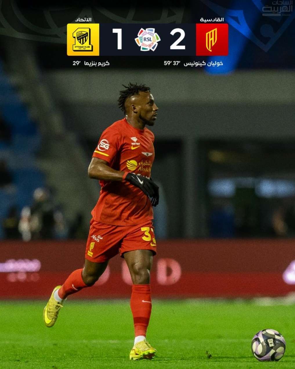 وجاء رد القادسية سريعًا بهدف التعادل عبر الكولومبي خوليان كينيونيس، بعد متابعة لتسديدة زميله بونسو باه ووضعها في شباك الاتحاد عند الدقيقة “37”.