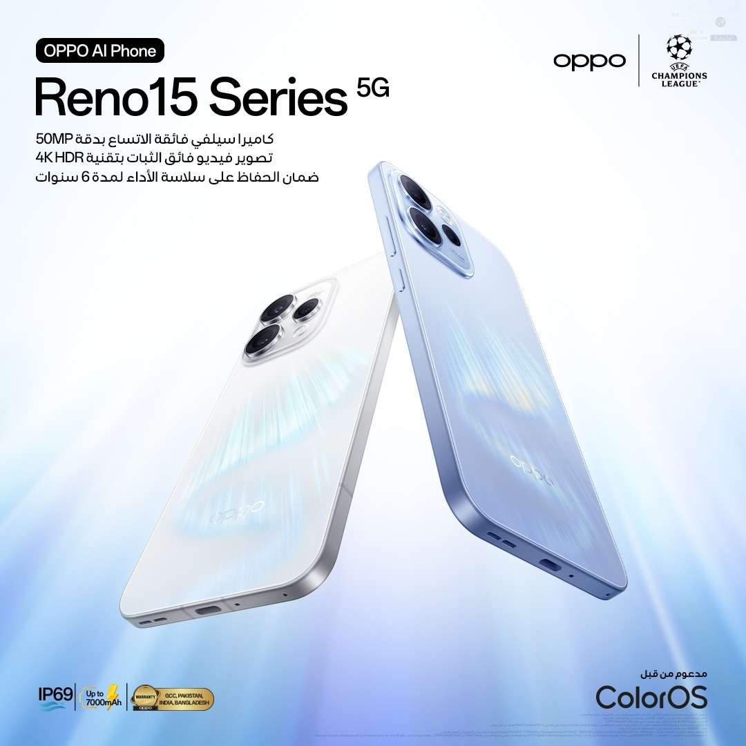 كشفت شركة أوبو (OPPO) اليوم عن سلسلة هواتفها الذكية الجديدة أوبو رينو 15  في المملكة العربية السعودية، والتي تضم الإصدارات: أوبو رينو 15 – OPPO Reno15 5G، أوبو رينو 15 برو – OPPO Reno15 Pro 5G، أوبو رينو 15F – OPPO Reno15 F 5G. وتوفر هذه السلسلة مجموعة شاملة من الأدوات الإبداعية التي تواكب متطلبات عشاق التقنيات الحديثة وصنّاع المحتوى، إذ تضع بين أيديهم كاميرا أمامية بزاوية واسعة دقة 50 ميجابكسل، إلى جانب قدرات تصوير فيديو احترافية، وأداء فائق السلاسة.