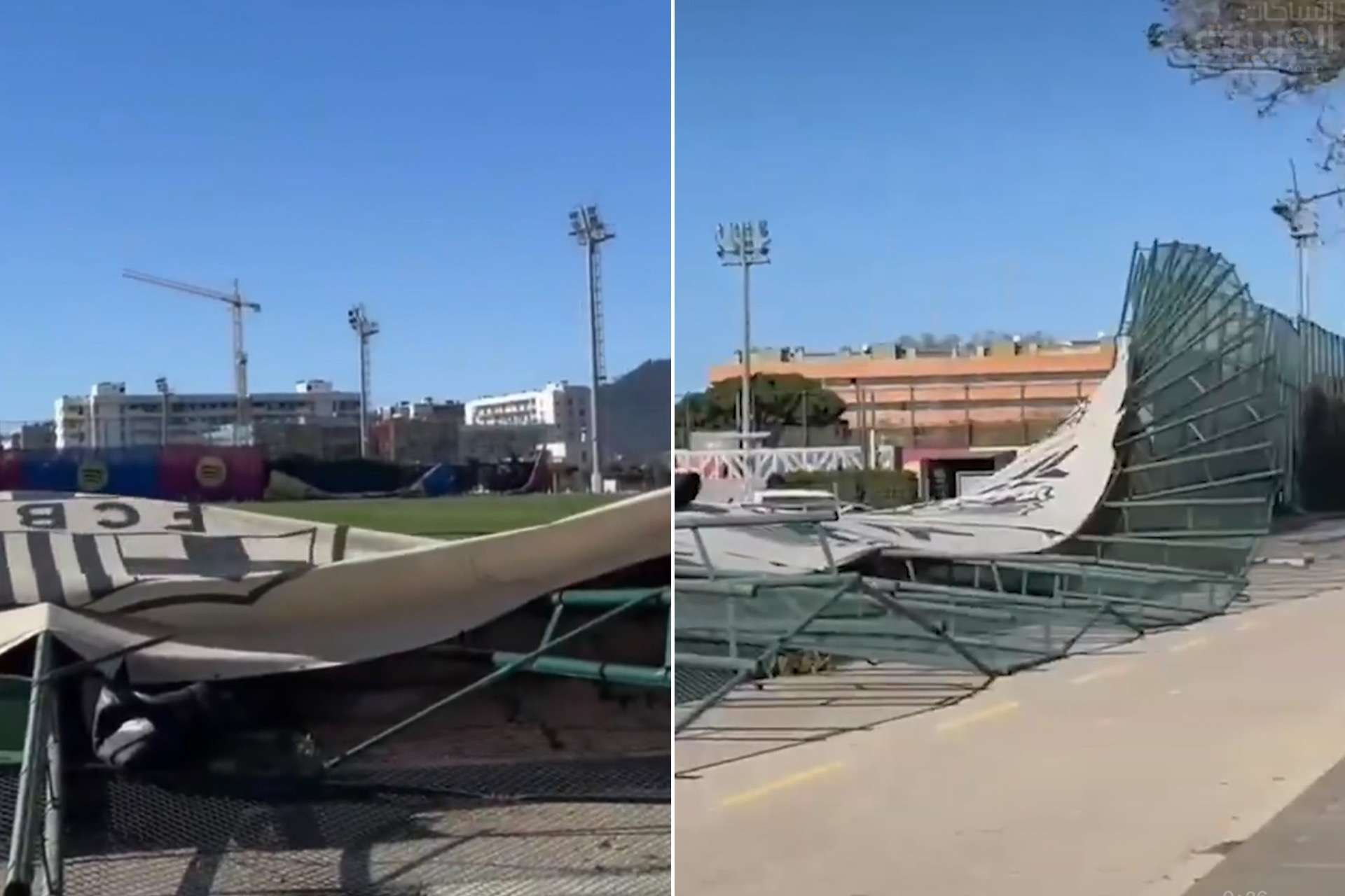 وقد أسقطت الرياح الشديدة قسما من السياج المعدني الذي يفصل مركز تدريب نادي برشلونة عن شارع فرانسيسك ماتسيا في سان خوان دي سبي، دون أن يسفر الحادث عن أي إصابات.