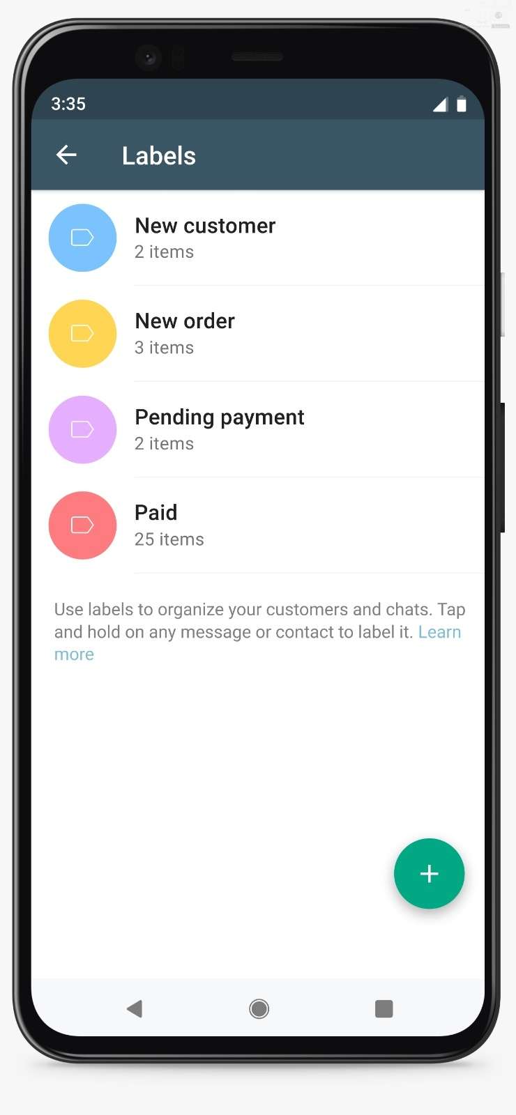 غالباً ما يكون استلام كمّ هائل من الطلبات خلال شهر رمضان أمراً مرهقاً. لذلك، يمكنكم استخدام التصنيفات لترتيب المحادثات على الفور بحسب وضعها (مثل: “تمّ الدفع – جاهز للتسليم”، “قائمة الإفطار”) واستخدام ألوان مختلفة لتصنيف الطلبات وفقاً للأولوية وإدارة الطلب الكبير بفعالية وكفاءة. ملاحظة: بات بإمكان بعض الشركات اليوم رؤية قوائم ( Lists) بدلاً من تصنيفات.