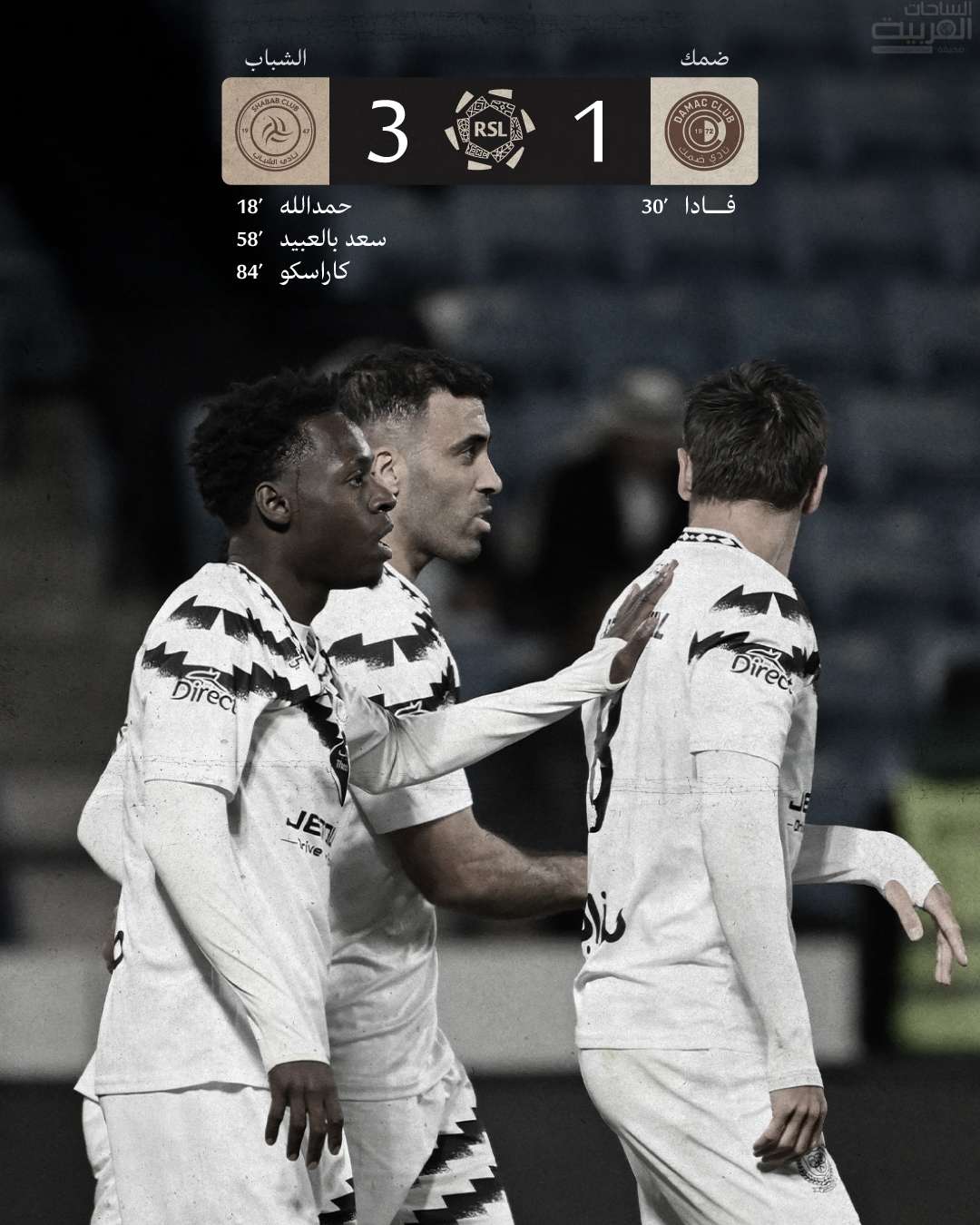 ووصل رصيد نادي الشباب إلى 22 نقطة، وتقدم للمركز الثالث عشر، في حين بقي ضمك على رصيده السابق 15 نقطة، في المركز السادس عشر .