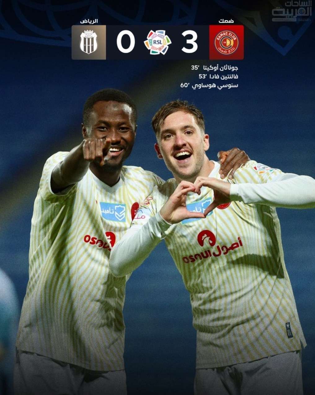 سجل أهداف ضمك جوناثان أوكيتا في الدقيقة 35، وفالنتين فادا في الدقيقة 53 وسنوسي هوساوي في الدقيقة 60.