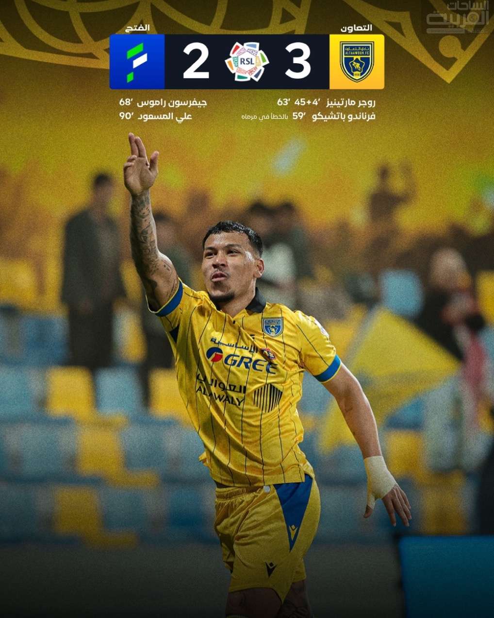 وسجل علي المسعود هدف مع صافرة نهاية المواجهة لمصلحة الفتح وبالتحديد في الدقيقة 90+5 لتنتهي المباراة بفوز التعاون بنتيجة 3 -2 .