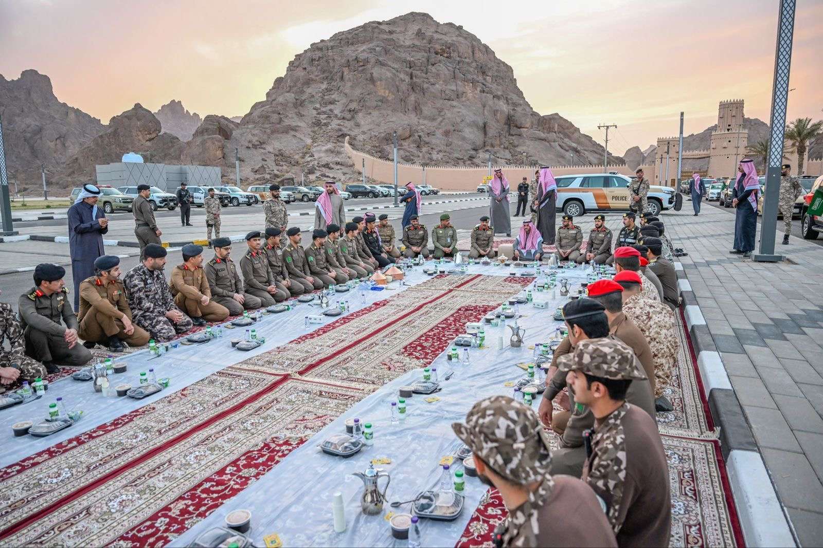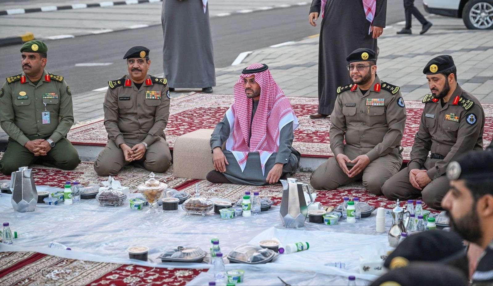 شارك صاحب السمو الملكي الأمير فيصل بن فهد بن مقرن بن عبدالعزيز نائب أمير منطقة حائل اليوم 22 رمضان 1447هـ الموافق 11 مارس 2026 م رجال الأمن بالمنطقة إفطارهم الرمضاني في الميدان، بحضور مدير شرطة المنطقة اللواء الدكتور كتاب العتيبي، وعدد من مديري وقيادات ومنسوبي القطاعات الأمنية بالمنطقة.