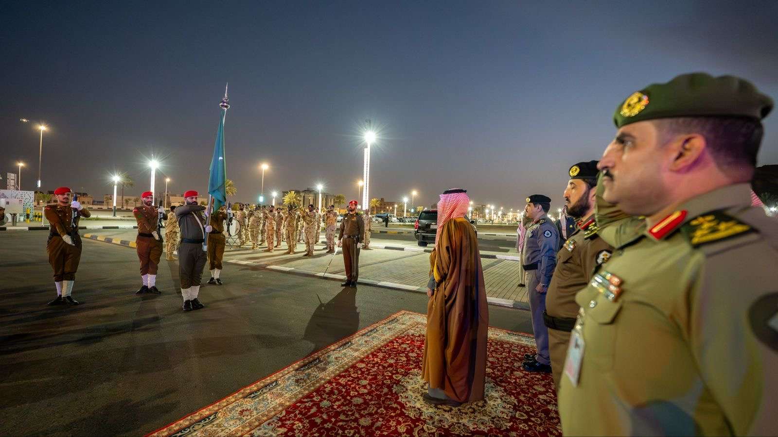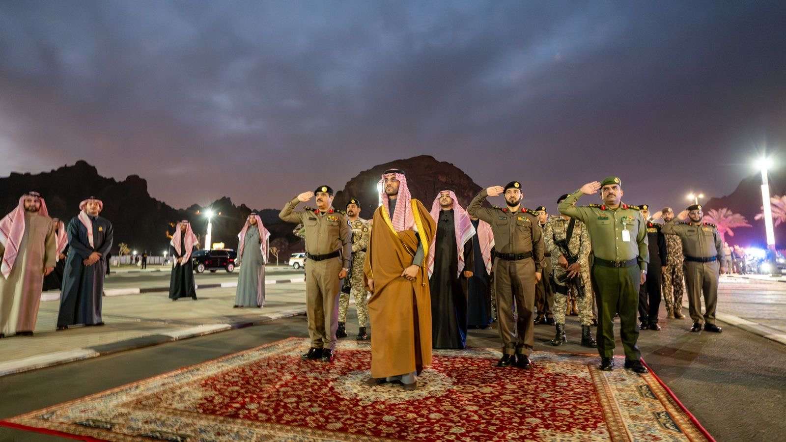 وشهد سموه أداء رجال الأمن تحية العلم بمناسبة يوم العلم، كما دشّن المسيرة الأمنية للقطاعات الأمنية في المنطقة، في مشهد يجسد الاعتزاز بالراية الوطنية وما تحمله من دلالات تاريخية ووطنية راسخة تعكس وحدة البلاد وسيادتها.