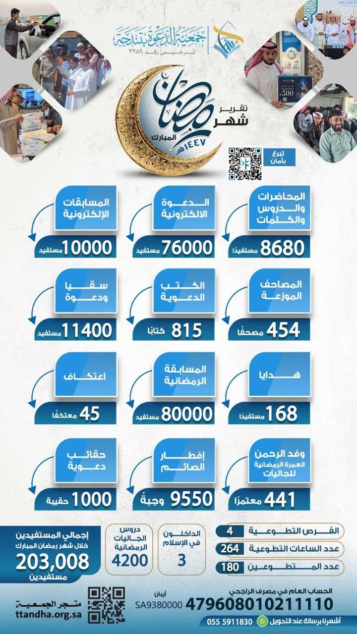 جمعية الدعوة بتندحة تحقق أكثر من 203 ألف مستفيد خلال رمضان 1447هـ