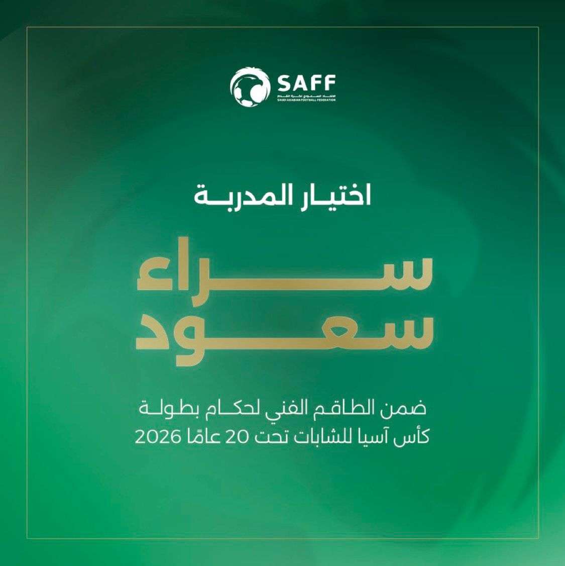 اختار الاتحاد الآسيوي لكرة القدم مدربة اللياقة سراء سعود عضوًا ضمن الطاقم الفني لحكام البطولة كأس آسيا للشابات تحت 20 عامًا 2026 والتي انطلقت اليوم الأربعاء في العاصمة التايلاندية بانكوك وتستمر حتى 18 أبريل الجاري.