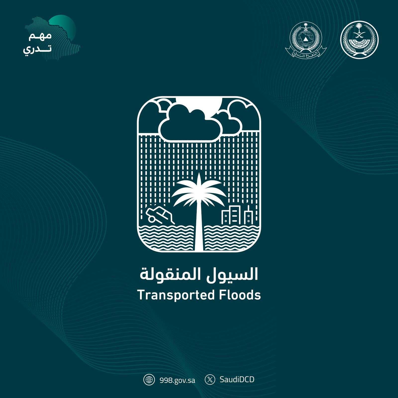 ودعت المديرية العامة للدفاع المدني إلى متابعة التعليمات الصادرة عبر القنوات الرسمية للجهات المختصة، والاتصال بالرقمين (911) في مناطق مكة المكرمة والمدينة المنورة والرياض والشرقية، و(998) في بقية مناطق المملكة لطلب المساعدة في الحالات الطارئة.