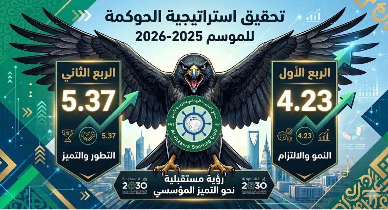 مجلس إدارة نادي الجزيرة الرياضي بجزيرة دارين، أعلن عن تحقيق قفزة نوعية و”نمواً كاسحاً” في نتائج تقييم استراتيجية الحوكمة للموسم الرياضي 2025-2026.