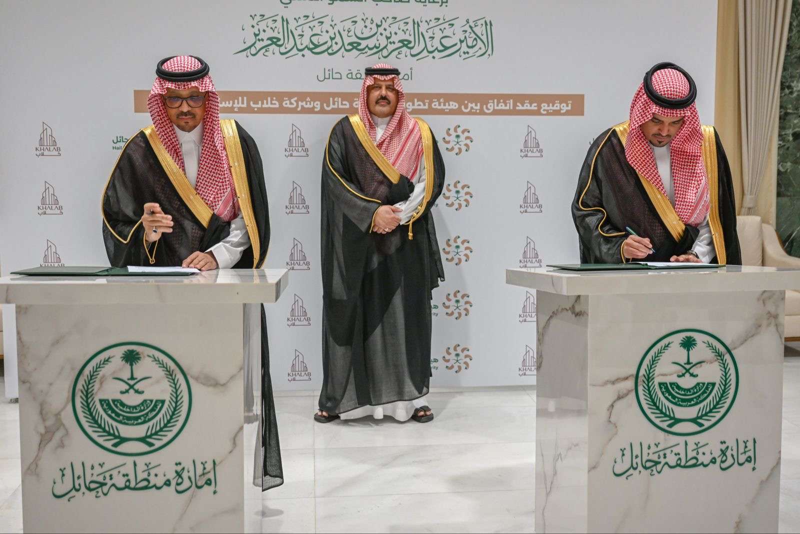 رعى صاحب السمو الملكي الأمير عبدالعزيز بن سعد بن عبدالعزيز، أمير منطقة حائل، أمس في مقر الإمارة، مراسم توقيع عقد استثماري لإنشاء مجمع تعليمي متكامل بالمنطقة، وذلك بين هيئة تطوير منطقة حائل وشركة خلاب للاستثمار التجاري، بحضور وكيل الإمارة علي بن سالم آل عامر، والرئيس التنفيذي لهيئة تطوير المنطقة عمر بن عبدالله العبدالجبار، ورئيس مجلس إدارة شركة خلاب للاستثمار التجاري الأستاذ الوليد بن خالد البلطان.