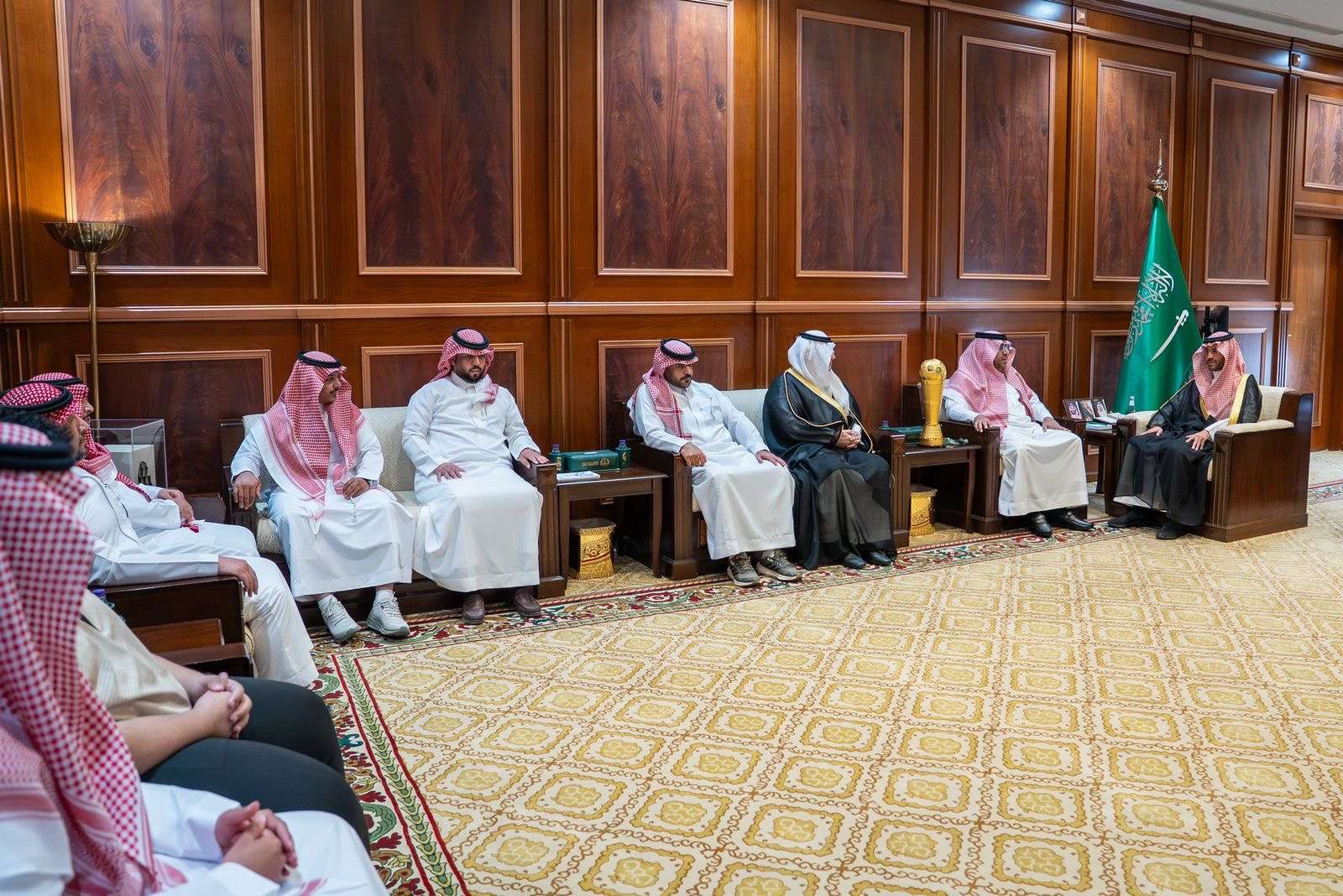 استقبل صاحب السمو الملكي الأمير فيصل بن فهد بن مقرن بن عبدالعزيز، نائب أمير منطقة حائل، أمس في مكتبه بالإمارة، رئيس مجلس إدارة نادي فيد الرياضي مشاري مشعان الشمري، والرئيس التنفيذي للنادي تركي الفريخ، يرافقهما أعضاء مجلس الإدارة وعدد من لاعبي الفريق، وذلك بحضور مدير فرع وزارة الرياضة بالمنطقة الأستاذ أحمد روزي، بمناسبة تحقيق النادي بطولة الدوري السعودي الممتاز لكرة قدم الصالات تحت 20 عامًا للموسم الرياضي 2025–2026م.
