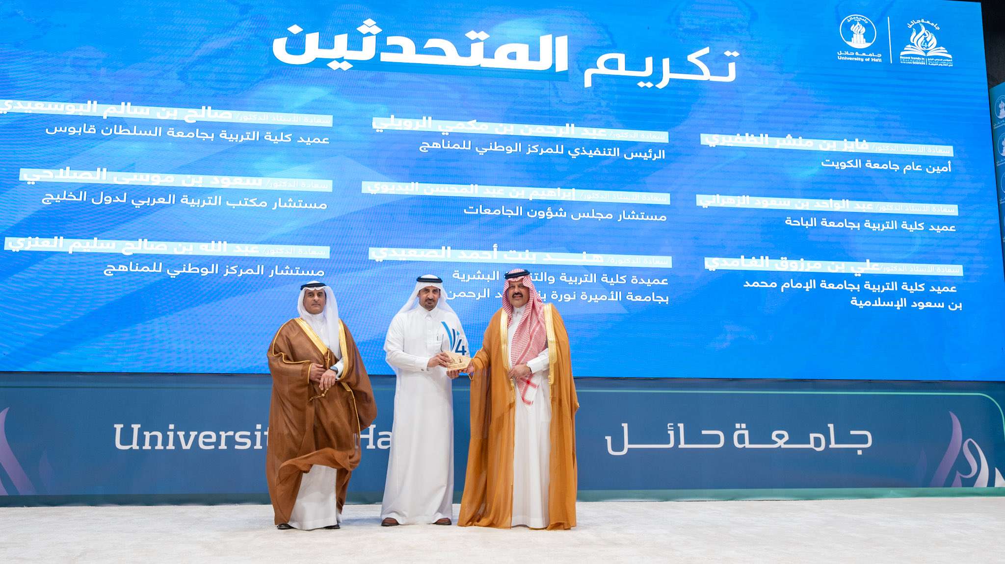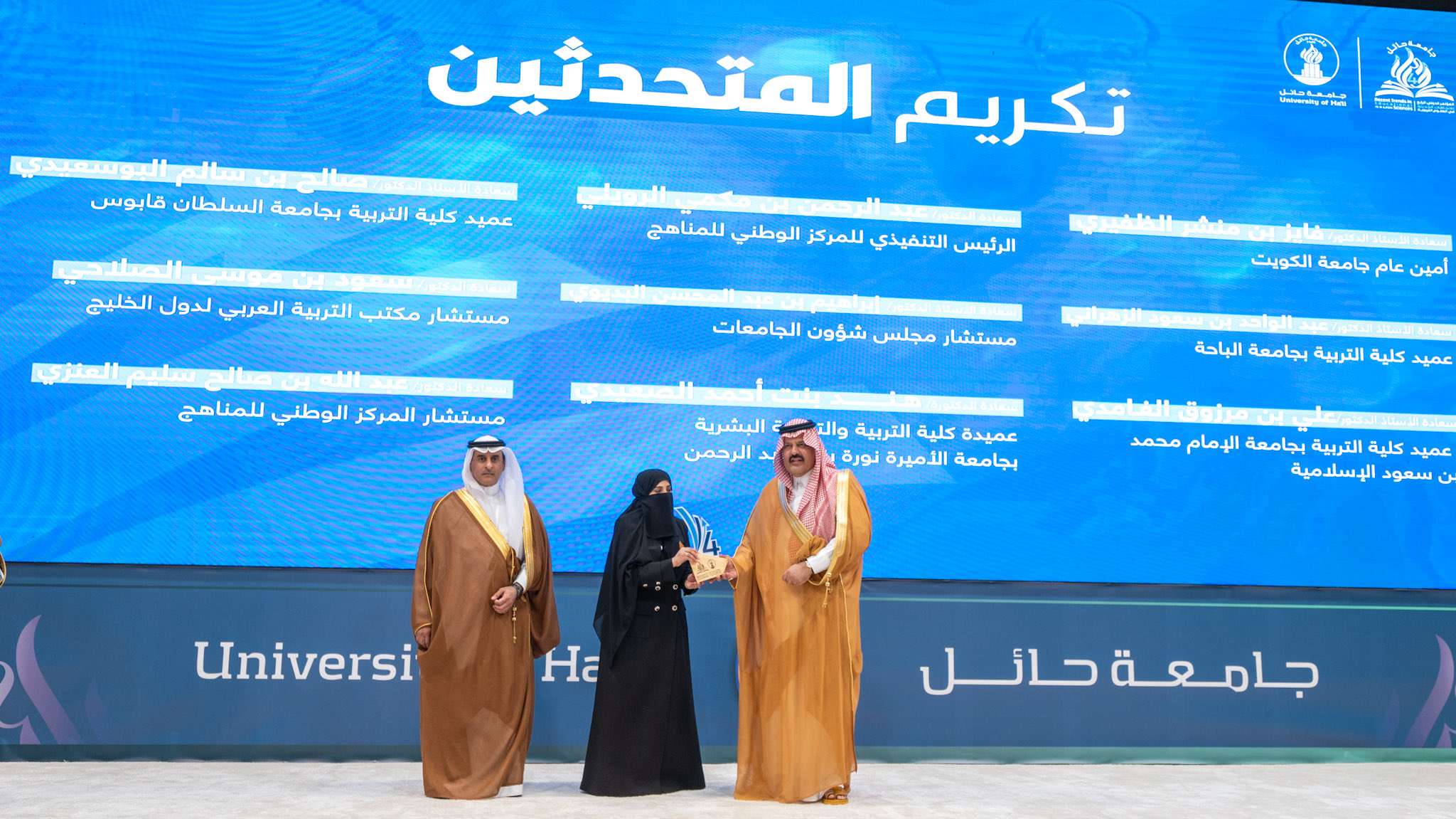 وفي ختام الحفل، كرّم سمو أمير منطقة حائل المتحدثين في المؤتمر، منوهًا بالحراك العلمي والتعاون بين الجامعة وإدارة التعليم، متمنيًا أن تسهم مخرجات المؤتمر ومذكرة التعاون في دعم مسيرة التعليم بالمنطقة.