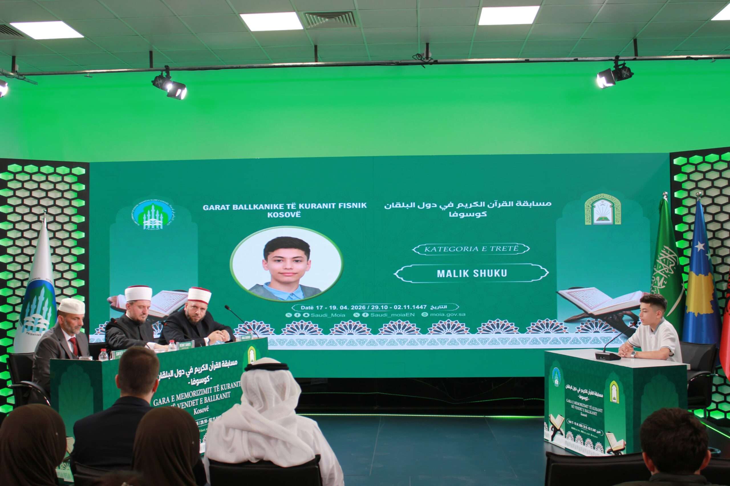 تشهد العاصمة الكوسوفية برشتينا أجواءً قرآنية مميزة مع انطلاق التصفيات الأولية لمسابقة القرآن الكريم المحلية للبنين والبنات في دورتها الأولى، التي تنظمها وزارة الشؤون الإسلامية والدعوة والإرشاد، ممثلةً بالملحقية الدينية في سفارة المملكة بالبوسنة والهرسك، وبالتعاون مع المشيخة الإسلامية في جمهورية كوسوفو، بمشاركة (100) متسابق ومتسابقة، وذلك خلال الفترة من 17 إلى 19 أبريل 2026م في مقر كلية الدراسات الإسلامية ، ضمن جهود المملكة العربية السعودية في خدمة القرآن الكريم عالميًا، وتعزيز حضوره في نفوس الأجيال، وترسيخ القيم الإسلامية.