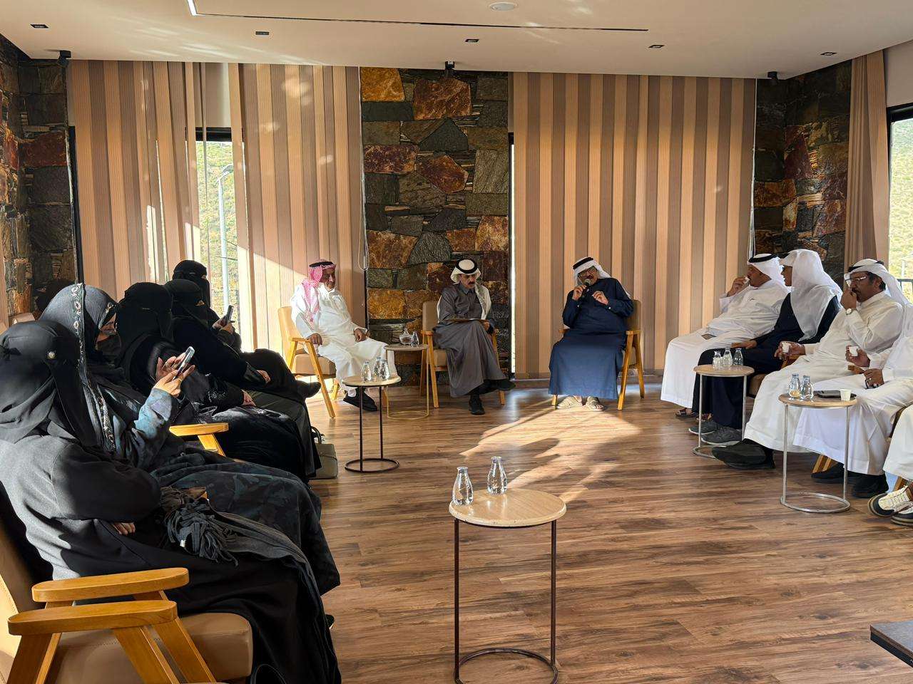 أقامت جمعية الثقافة والفنون في أبها بالشراكة مع قصور آل أبو سراح وبمناسبة اليوم العالمي للفن 2026 أمسية ثقافية بعنوان “تجارب فنية..مسيرة الفنان وسيرة المكان”،بحضور نخبة من المهتمين بالفنون والثقافة.وشهدت الأمسية حديث الفنانين المشاركين عن تجاربهم الإبداعية ومسيرتهم الفنية،إلى جانب استعراض التاريخ الفني العريق لمنطقة عسير وما تزخر به من إرث ثري في مجال الفنون التشكيلية.وشارك في الأمسية كل من الفنان مفرح عسيري،والفنان محمد شراحيلي،فيما أدار اللقاء الأستاذ ماجد عسيري.وأكد مدير جمعية الثقافة والفنون في أبها حرص الجمعية على دعم الحراك الفني والثقافي،وإبراز تجارب الفنانين،وتعزيز حضور الفنون بوصفها أحد روافد الهوية الوطنية والتنمية الثقافية
