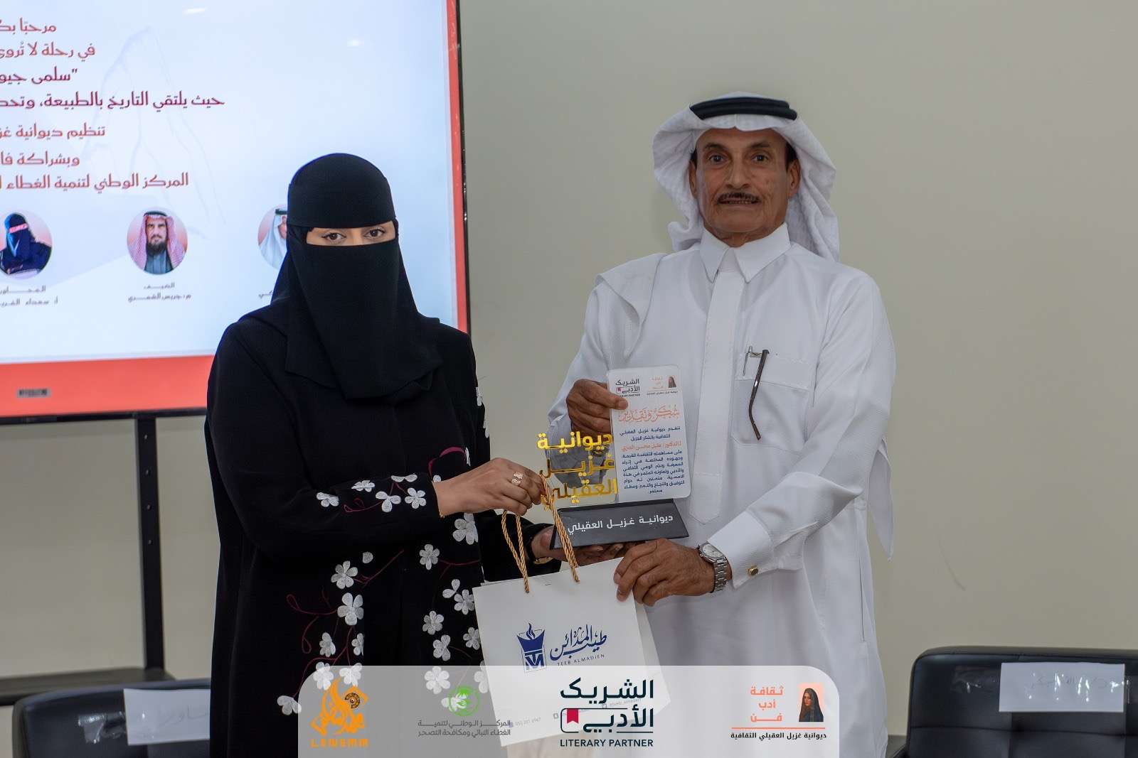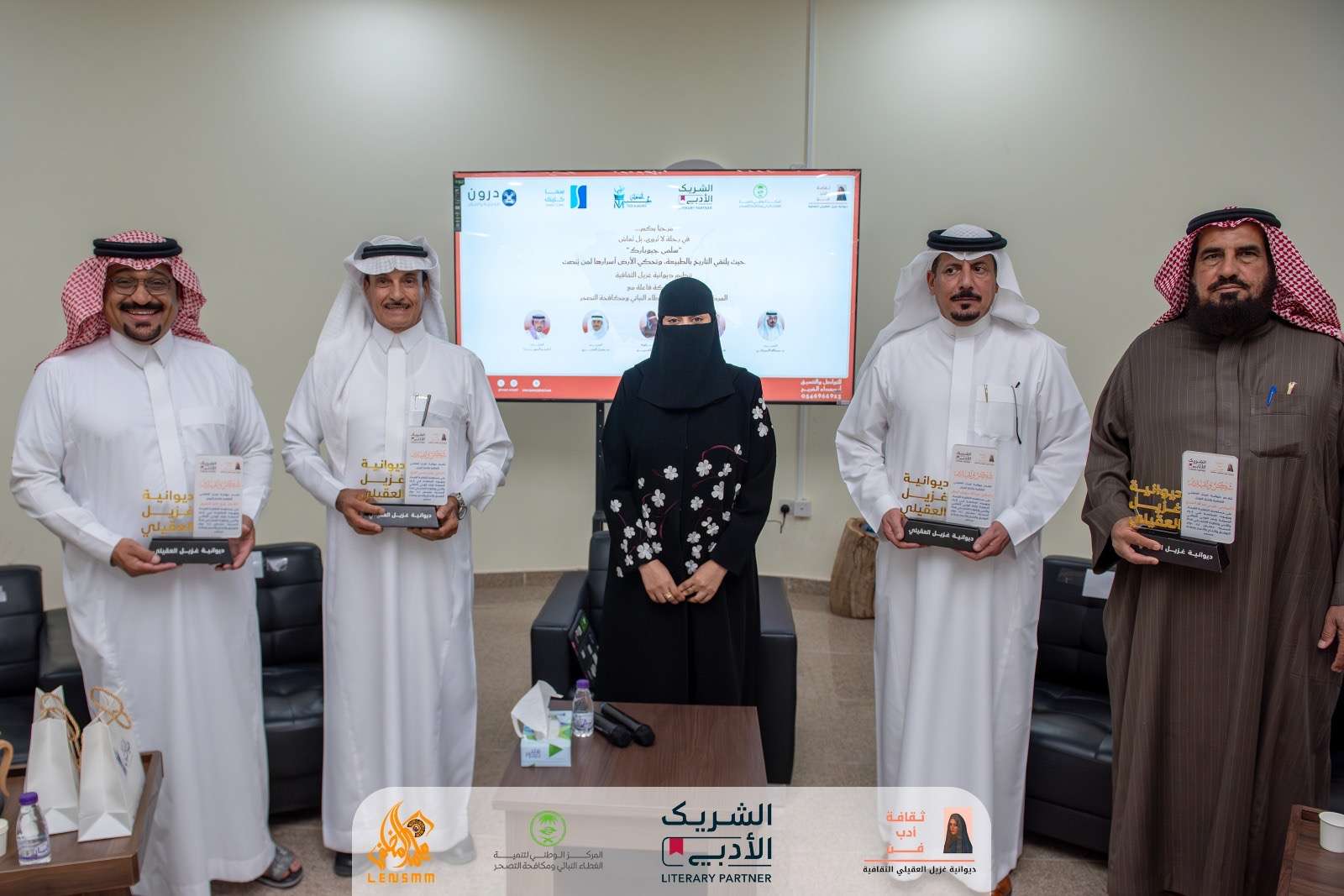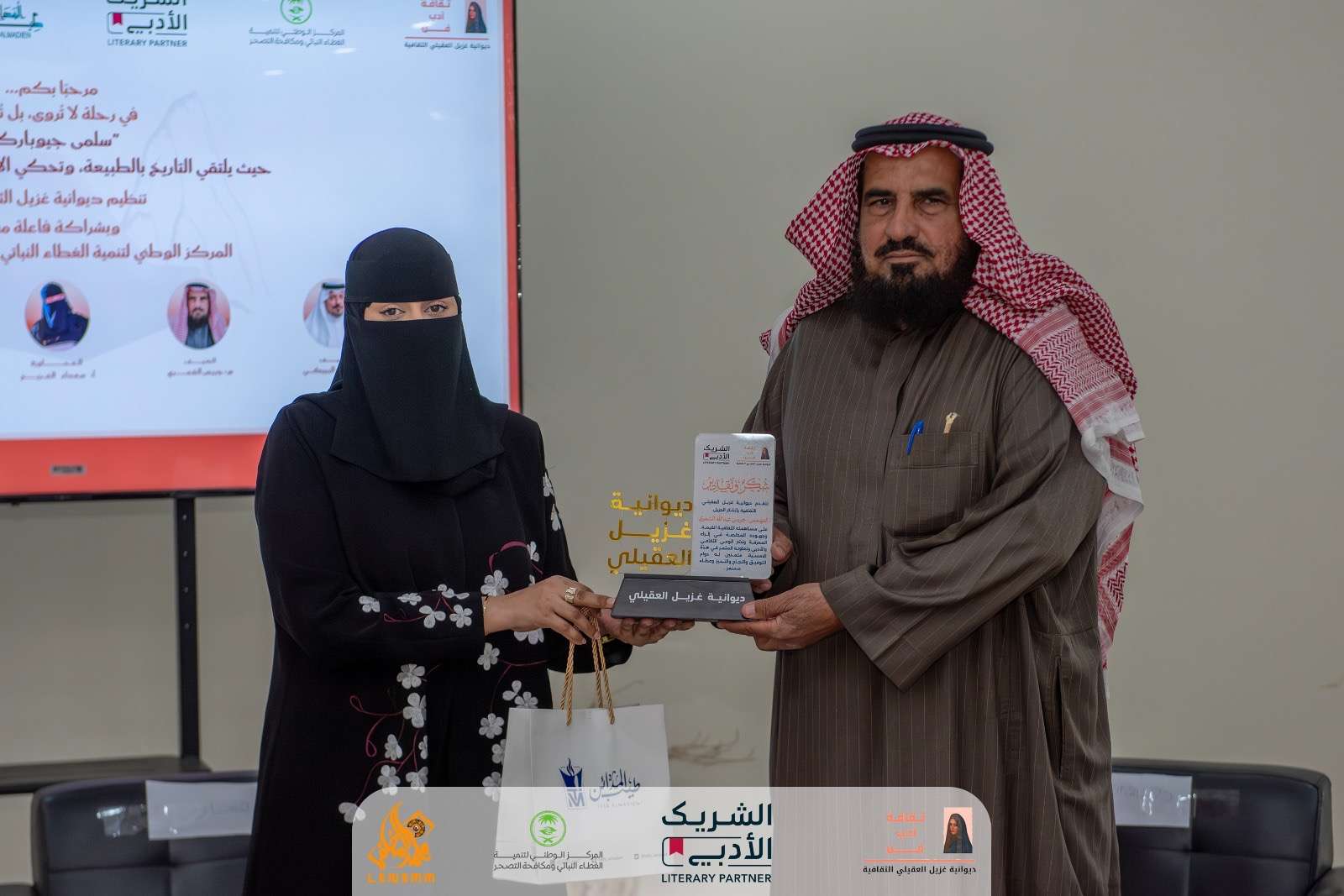 نظّمت ديوانية غزيل العقيلي الثقافية، مساء اليوم السبت 25 أبريل 2026م ، لقاءً ثقافيًا بعنوان “سلمى جيوبارك.. حكاية مكان وتجربة تعيشها”، وذلك بالتعاون مع المركز الوطني لتنمية الغطاء النباتي ومكافحة التصحر، بمقر المركز في منطقة حائل، وسط حضور نوعي من المهتمين بالشأن الثقافي والبيئي والسياحي،