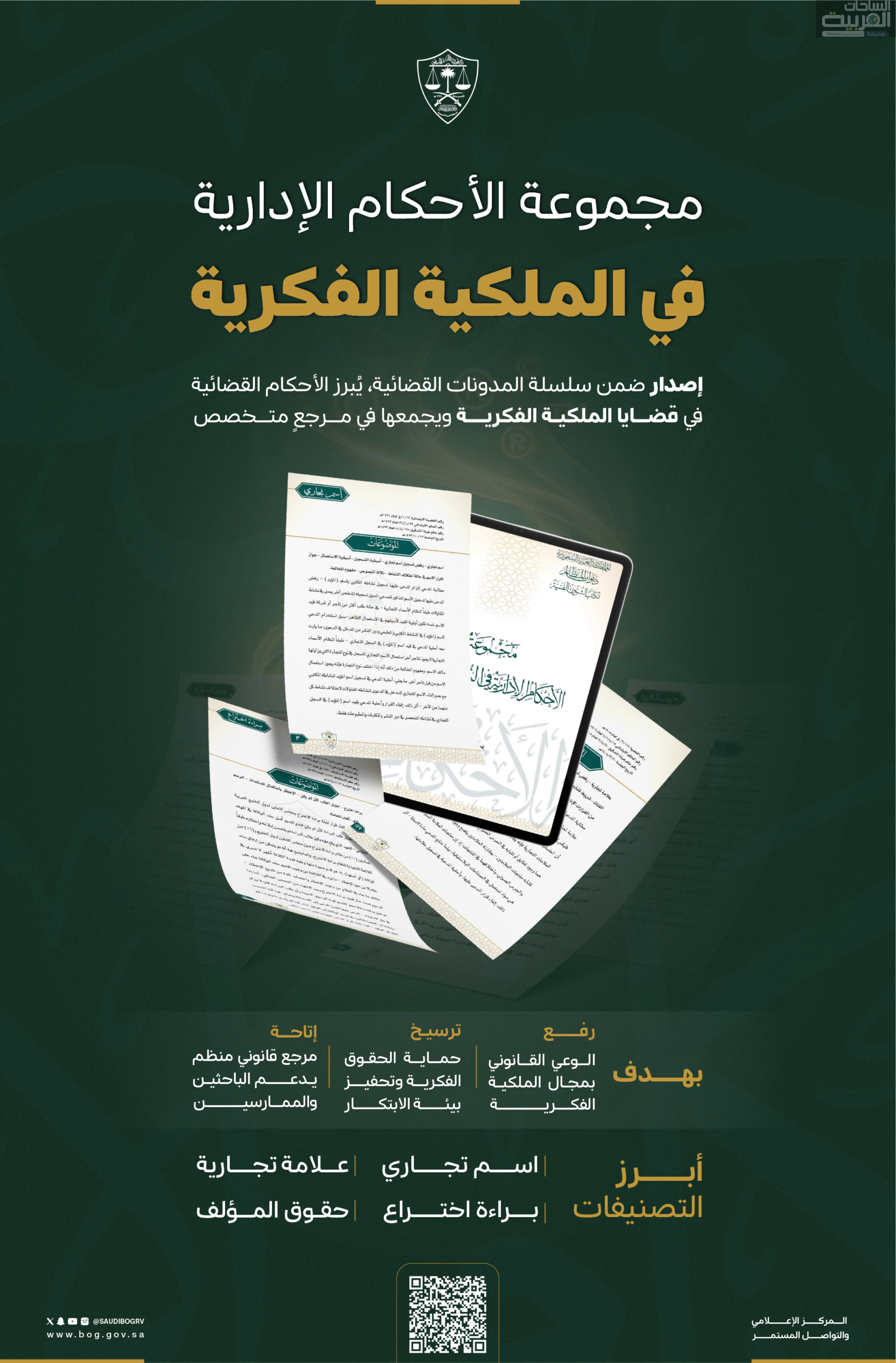 وتضم مجموعة الأحكام الإدارية في الملكية الفكرية أكثر من ثلاثمائة حكم موزعة على خمسة مجلدات، صادرة من مختلف المحاكم الإدارية في دعاوى وموضوعات الملكية الفكرية، والمؤيدة من محاكم الاستئناف الإدارية، بما يجعل هذه المجلدات مصدرًا معرفيًا وتثقيفيًا مهمًا لرواد المدونات القضائية في أنظمة حقوق الملكية الفكرية في المملكة وعلومها.