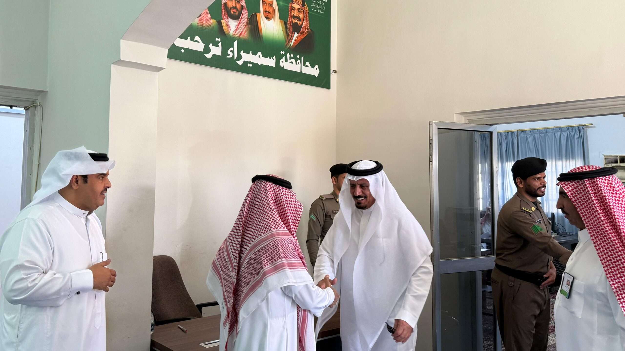 استقبل محافظ محافظة سميراء الأستاذ عمر بن مزيد الزبن، اليوم الإثنين الموافق 27 أبريل 2026م، في مقر المحافظة، مدير عام المركز الوطني لتنمية الغطاء النباتي ومكافحة التصحر بمنطقة حائل الدكتور عبدالله بن سليمان البريكي، وذلك في إطار تعزيز التعاون المشترك في المجالات البيئية والتنموية.