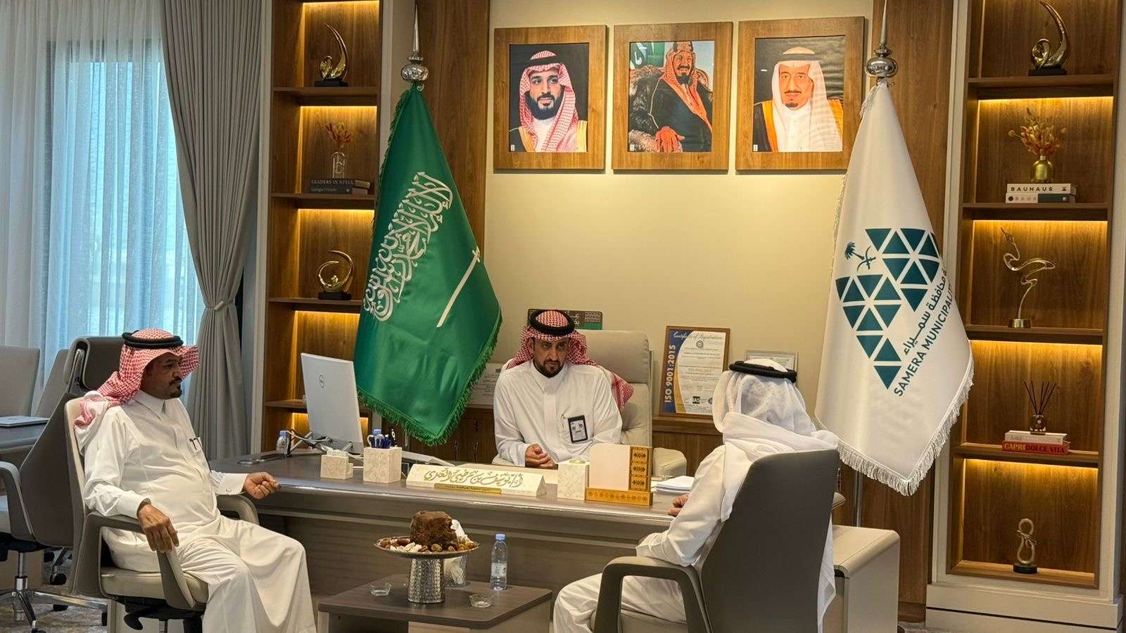 وفي السياق ذاته، قام مدير عام المركز الدكتور عبدالله البريكي بزيارة إلى بلدية محافظة سميراء، حيث كان في استقباله رئيس البلدية الأستاذ يوسف بن مرضي الغضوري، بحضور محافظ سميراء وعدد من مديري الإدارات بالمركز، وذلك ضمن جهود تعزيز التنسيق والتكامل بين الجهات الحكومية ذات العلاقة بالشأن البيئي.