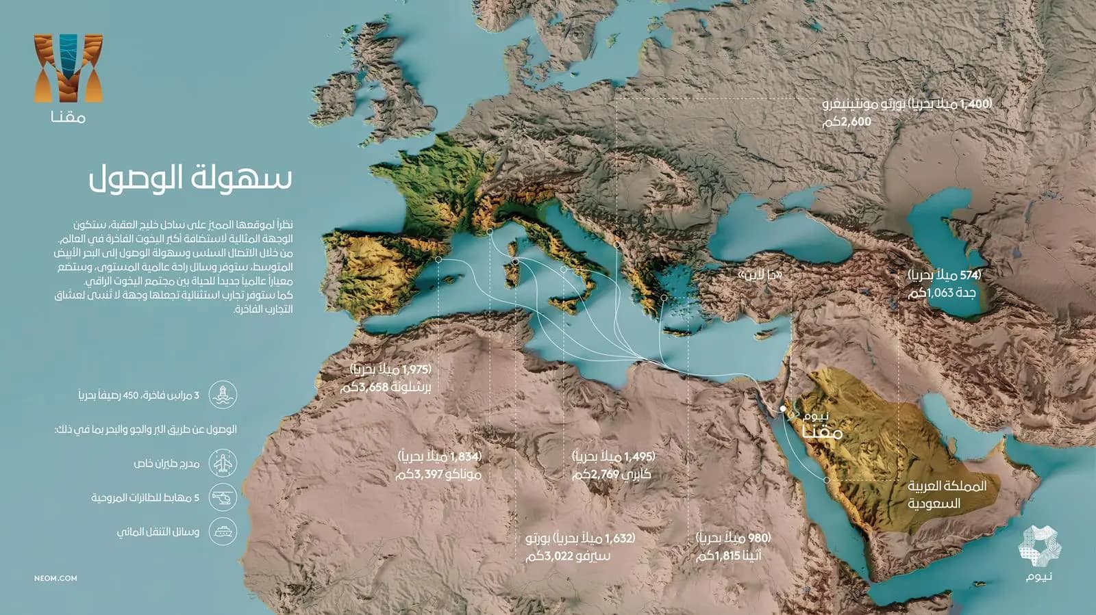 كما يعد “مقنا” أحدث المشاريع الرائدة التي يجري تطويرها في نيوم، والتي تضم مدينة “ذا لاين”، و”أوكساچون” مدينة الصناعات المتقدمة والنظيفة في نيوم، ومشروع “تروجينا” للسياحة الجبلية، وجزيرة “سندالة” الفاخرة.