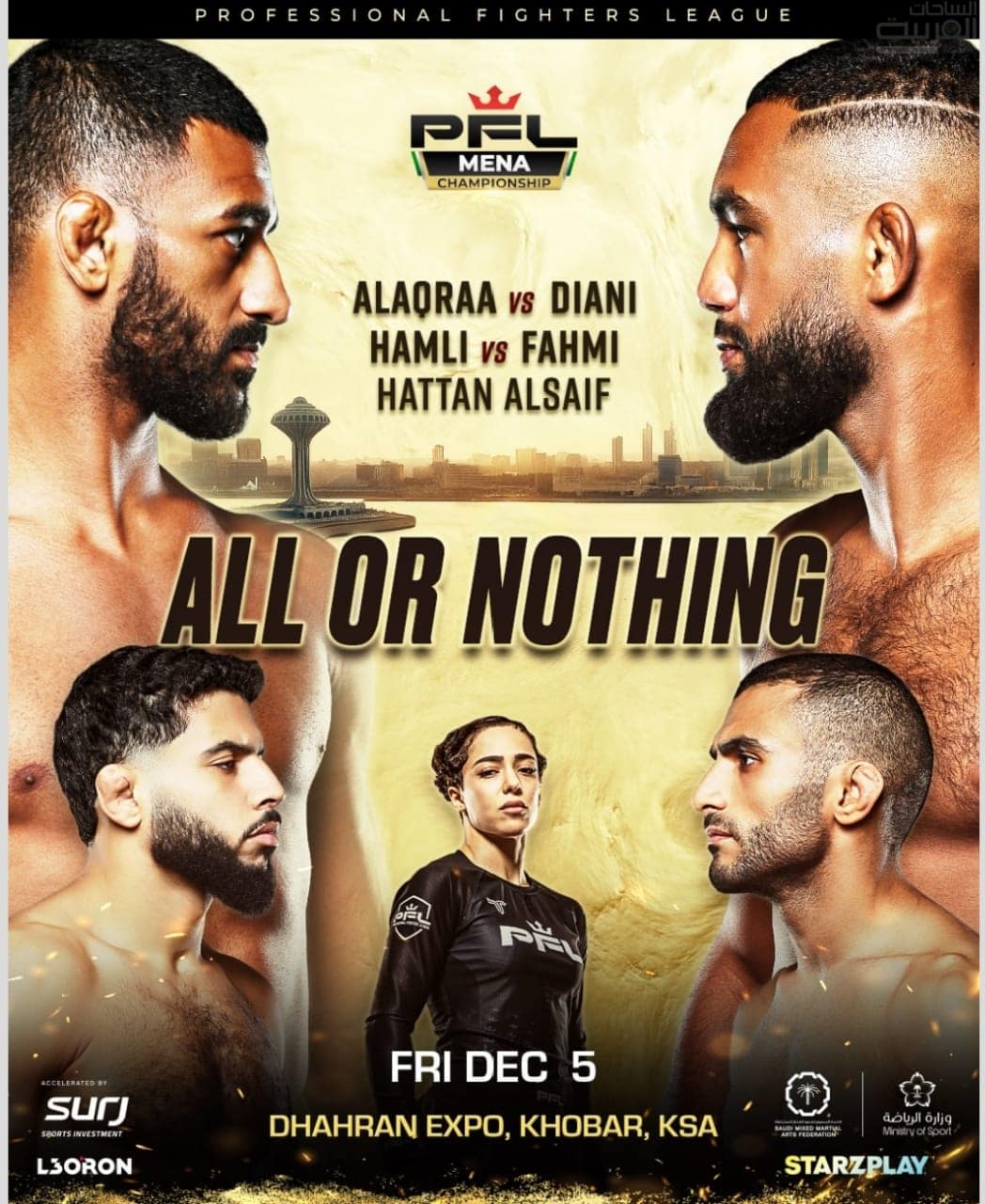 تستعد مدينة الخبر السعودية لاحتضان ليلة تاريخية من فنون القتال المختلطة، حيث تُقام نهائيات بطولة PFL MENA لموسم 2025 يوم ٥ ديسمبر القادم تحت شعار «الكل أو لا شيء» في الظهران اكسبو، بمشاركة نخبة من أبرز المقاتلين العرب الذين يتنافسون في أربع نزالات نهائية على ألقاب مناطقهم في فئات الوزن المختلفة، إلى جانب مواجهات استعراضية مميزة.