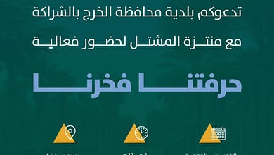 الخرج – خلود الميزاني اختتمت في مشتل الخرج فعاليات “حرفتنا فخرنا” التي أقيمت يومي الخميس والجمعة الموافق 24 – 25…