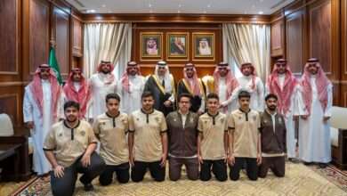 نائب أمير منطقة حائل يستقبل منسوبي نادي فيد الرياضي بمناسبة تحقيق بطولة الدوري الممتاز لكرة قدم الصالات تحت 20 عامًا