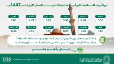 أكملت وزارة الشؤون الإسلامية والدعوة والإرشاد، ممثّلةً بفرعها في المنطقة الشرقية، جميع الاستعدادات لإقامة صلاة عيد الفطر المبارك لعام 1447هـ،…