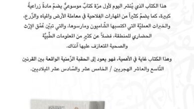 اختير كتاب “جامع فرائد الملاحة في جوامع فوائد الفلاحة”، بتحقيق الأستاذ الدكتور إحسان ذنون الثامري (العراق)، ليكون كتاب العام التراثي…