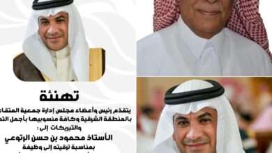 قدم رئيس مجلس إدارة جمعية المتقاعدين بالمنطقة الشرقية الأستاذ محمد القرناس بأسمه ونيابة عن أعضاء وكافة منسوبي الجمعية بأجمل التهاني…