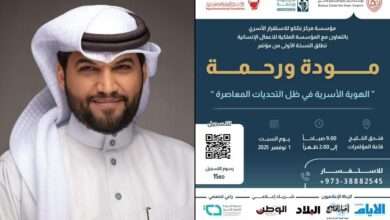 بالتعاون مع المؤسسة الملكية للأعمال الإنسانية بتلكو للاستقرار الأسري تطلق مؤتمر مودة ورحمة لمناقشة الهوية الأسرية في البحرين